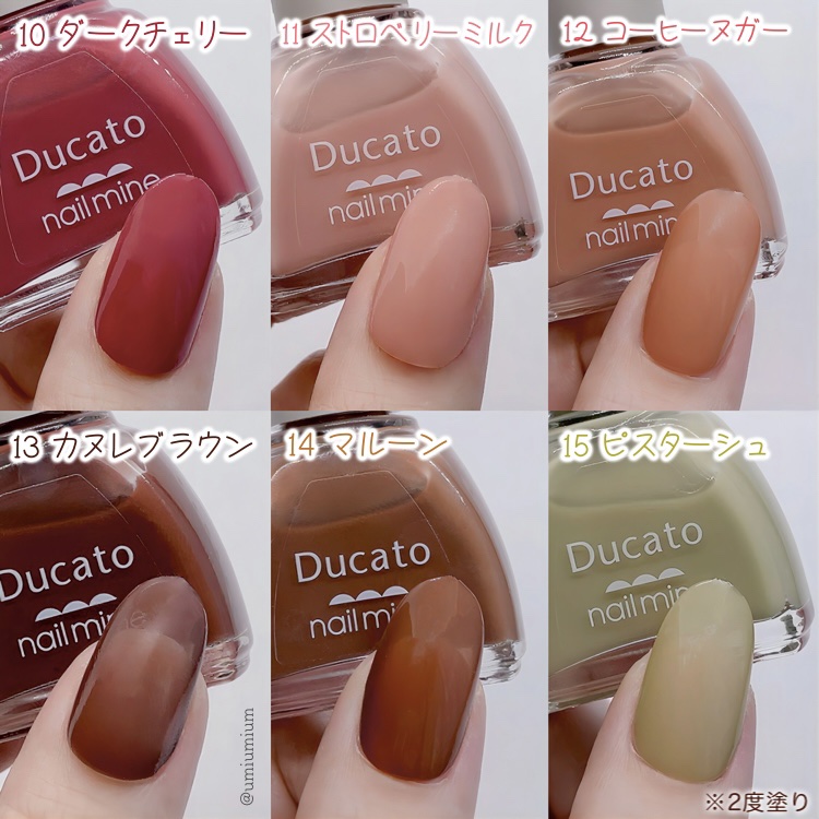 - <01 はじまりの笑顔> 酢酸ブチル、酢酸エチル、ニトロセルロース、(アジピン酸/ネオペンチルグリコール/無水トリメリト酸)コポリマー、クエン酸アセチルトリブチル、イソプロパノール、(スチレン/アクリレーツ)コポリマー、合成フルオロフロゴパイト、ステアラルコニウムベントナイト、シリカ、酸化チタン、ブタノール、酸化鉄、ジアセトンアルコール、クエン酸トリブチル、リン酸、酸化スズ、黄4 <02 はじらいコーラル> 酢酸ブチル、酢酸エチル、ニトロセルロース、(アジピン酸/ネオペンチルグリコール/無水トリメリト酸)コポリマー、クエン酸アセチルトリブチル、イソプロパノール、合成フルオロフロゴパイト、(スチレン/アクリレーツ)コポリマー、酸化チタン、ステアラルコニウムベントナイト、ブタノール、ジアセトンアルコール、シリカ、黄4、クエン酸トリブチル、赤202、赤226、リン酸、酸化スズ <03 ベイビーミント> 酢酸ブチル、酢酸エチル、ニトロセルロース、(アジピン酸/ネオペンチルグリコール/無水トリメリト酸)コポリマー、クエン酸アセチルトリブチル、イソプロパノール、酸化チタン、(スチレン/アクリレーツ)コポリマー、ステアラルコニウムベントナイト、合成フルオロフロゴパイト、ブタノール、ジアセトンアルコール、シリカ、クエン酸トリブチル、コンジョウ、酸化鉄、黄4、リン酸、酸化スズ <04 あの日の空> 酢酸ブチル、酢酸エチル、ニトロセルロース、(アジピン酸/ネオペンチルグリコール/無水トリメリト酸)コポリマー、クエン酸アセチルトリブチル、イソプロパノール、(スチレン/アクリレーツ)コポリマー、合成フルオロフロゴパイト、酸化チタン、ステアラルコニウムベントナイト、シリカ、ブタノール、ジアセトンアルコール、コンジョウ、クエン酸トリブチル、リン酸、黄4 <05 恋人つなぎ> 酢酸ブチル、酢酸エチル、ニトロセルロース、(アジピン酸/ネオペンチルグリコール/無水トリメリト酸)コポリマー、クエン酸アセチルトリブチル、イソプロパノール、酸化チタン、(スチレン/アクリレーツ)コポリマー、合成フルオロフロゴパイト、ステアラルコニウムベントナイト、マイカ、ブタノール、赤202、シリカ、ジアセトンアルコール、クエン酸トリブチル、赤226、リン酸、カーボンブラック、酸化スズ、黄4 <06 15時の誘惑> 酢酸エチル、酢酸ブチル、ニトロセルロース、クエン酸アセチルトリブチル、(アジピン酸/ネオペンチルグリコール/無水トリメリト酸)コポリマー、イソプロパノール、PET、シリカ、酸化チタン、硫酸Ba、水、ブタノール、オキシベンゾン-1、ポリウレタン-11、酸化鉄、黄4、カーボンブラック、コンジョウ、ステアラルコニウムベントナイト、ジアセトンアルコール、紫201 <07 君に夢中> 酢酸ブチル、酢酸エチル、ニトロセルロース、クエン酸アセチルトリブチル、イソプロパノール、(アジピン酸/ネオペンチルグリコール/無水トリメリト酸)コポリマー、PET、シリカ、ポリブチレンテレフタレート、ブタノール、合成フルオロフロゴパイト、アクリレーツコポリマー、(エチレン/VA)コポリマー、酸化チタン、ポリウレタン-11、マイカ、赤202、酸化スズ、コンジョウ、Al、黄4 <08 水しぶき> 酢酸ブチル、酢酸エチル、ニトロセルロース、クエン酸アセチルトリブチル、イソプロパノール、(アジピン酸/ネオペンチルグリコール/無水トリメリト酸)コポリマー、シリカ、PET、ポリブチレンテレフタレート、ブタノール、合成フルオロフロゴパイト、アクリレーツコポリマー、酸化チタン、(エチレン/VA)コポリマー、ポリウレタン-11、酸化スズ、コンジョウ、酸化鉄、黄4、Al <09 キウイモヒート> 酢酸エチル、酢酸ブチル、ニトロセルロース、(アジピン酸/ネオペンチルグリコール/無水トリメリト酸)コポリマー、クエン酸アセチルトリブチル、イソプロパノール、スイートアカシアガム、レーヨン、合成フルオロフロゴパイト、シリカ、グリセリン、酸化チタン、エトクリレン、ブタノール、尿素、水、(スチレン/アクリレーツ)コポリマー、カリトリスクアドリバルビスガム、青1、黄4、マイカ、ポリウレタン-35、酸化スズ、カルナウバロウ、ソルビン酸K、紫201 <10 ダークチェリー> 酢酸ブチル、酢酸エチル、ニトロセルロース、(アジピン酸/ネオペンチルグリコール/無水トリメリト酸)コポリマー、クエン酸アセチルトリブチル、イソプロパノール、(スチレン/アクリレーツ)コポリマー、ステアラルコニウムベントナイト、ブタノール、エトクリレン、ジアセトンアルコール、シリカ、酸化チタン、クエン酸トリブチル、酸化鉄、赤226、赤220、リン酸、カーボンブラック、黄4 <11 ストロベリーミルク> 酢酸ブチル、酢酸エチル、ニトロセルロース、(アジピン酸/ネオペンチルグリコール/無水トリメリト酸)コポリマー、クエン酸アセチルトリブチル、イソプロパノール、(スチレン/アクリレーツ)コポリマー、ステアラルコニウムベントナイト、ブタノール、エトクリレン、ジアセトンア