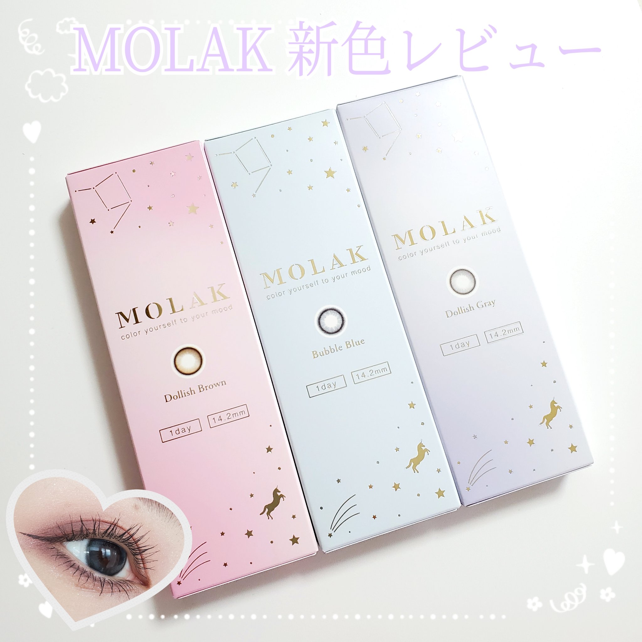 宮脇咲良さんプロデュースのカラコン、MOLAK‼ 日常的に使いやすいデザインから、特別な日のためのデザインまで種類が豊富。含水率55%の高含水でつけ心地滑らか‼ 目元アイドルですか?っていうくらい綺麗なグレーの水光レンズ。小粒目な私でも、目に光が入って目元の印象をハッキリさせてくれる! 目の印象が儚げになって、一気にアンニュイ顔に‼ 目の縁が少しぼやけて、柔らかめの印象なれちゃいます。透明感が爆誕するよ✨