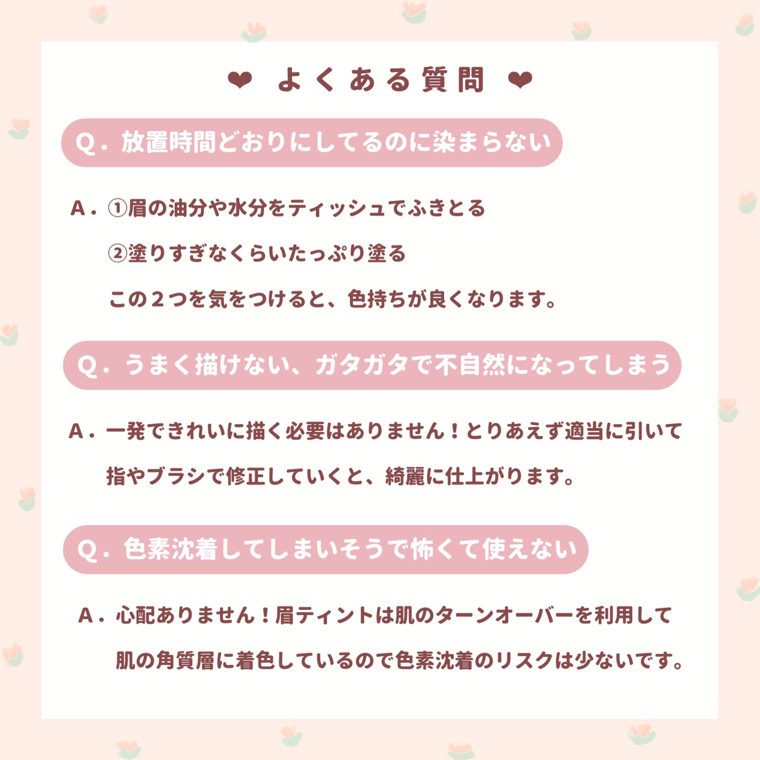 | 眉ティントランキング第5位 | 朝忙しい時も寝起きでも綺麗な眉のままなので、お泊りでも安心!3日ほど持続するので嬉しい! | 詳細を見る | |