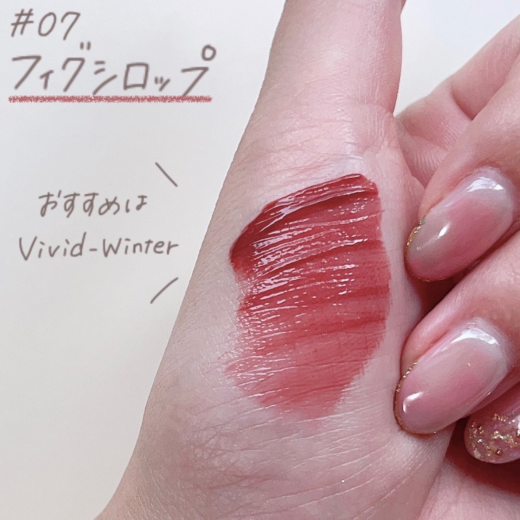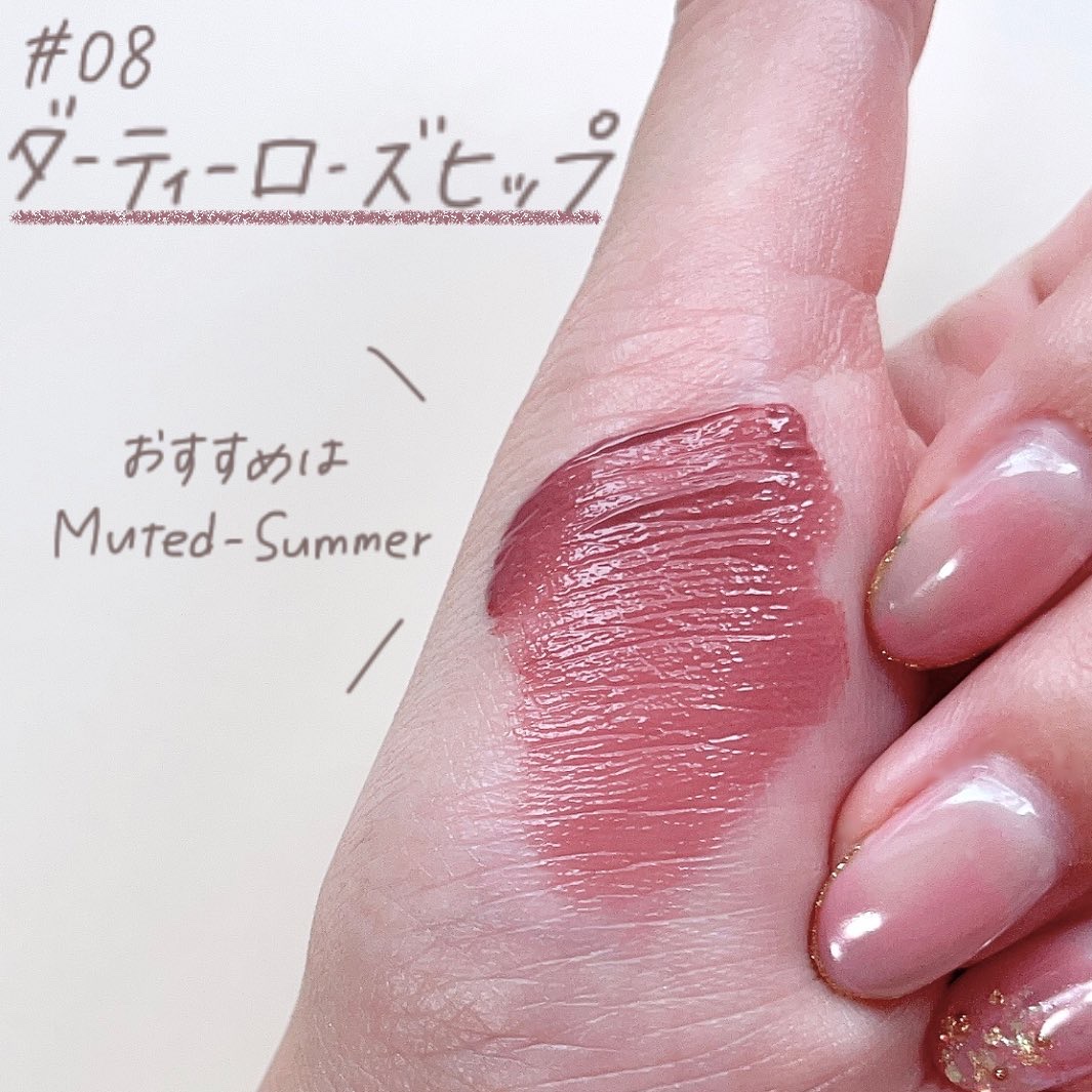 これ、インスタの広告で見かけて一目惚れして秒で買った🥺! まるで名刺みたいなリップグロス。 これ本当にうっすいんですよ!! リップ持ってるのうっかり忘れるくらい ポーチに入れても隙間にスッと入る。 なので持ち運びには最高🥹 なんならずぼらな私は ポッケに入れたくなる(一応我慢してる) 116は明るくやわらかさのあるピンク。 ほんのり青み寄りでブライトサマー、 ブライトスプリングには使いやすい◎ 118は青みのレッド。 こっちも全く重さはない まろやかさのある赤なので、 ブライトサマー、クールサマー クリアウィンターの軽めの赤としておすすめ♡ 色持ちは特別良い!って訳ではない。 ただ、うるみ感が残るので 潤い感のある唇に見えるのと 汚く落ちないので使いやすいです🙆♀️