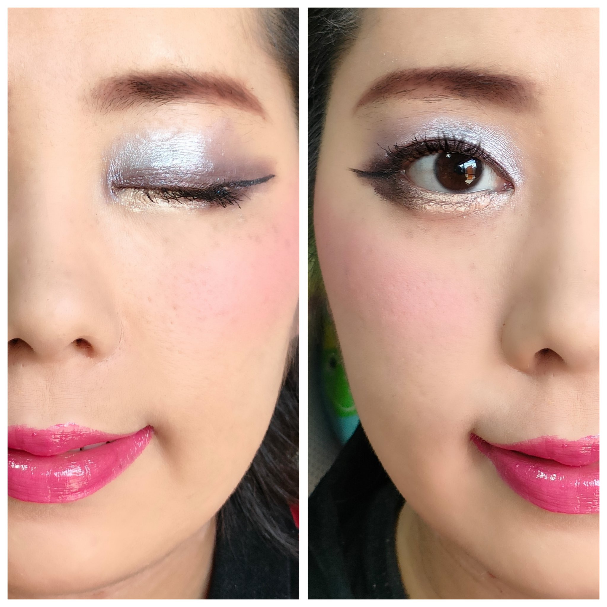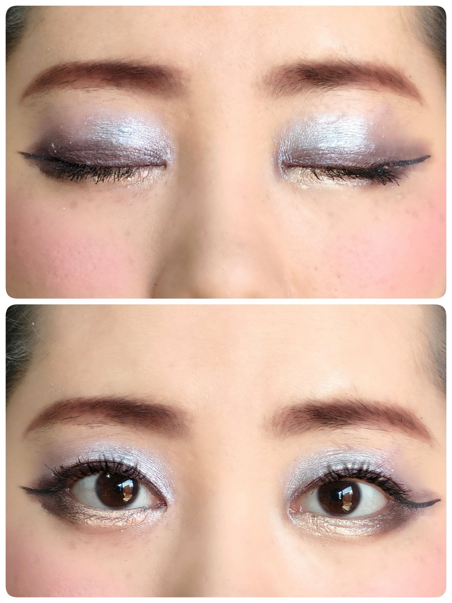 アイシャドウパレットは、URGLAM UR GLAMBLOOMING EYE COLOR PALETTE 02を、使用しました。 マスカラは、MAYBELLINE NEW YORK コロッサルボリュームエクスプレスを、まつ毛全体にまんべんなく塗ります。 リップは、wet 'n' wild MegaLast Lip Colorを、唇全体にまんべんなく塗ります。