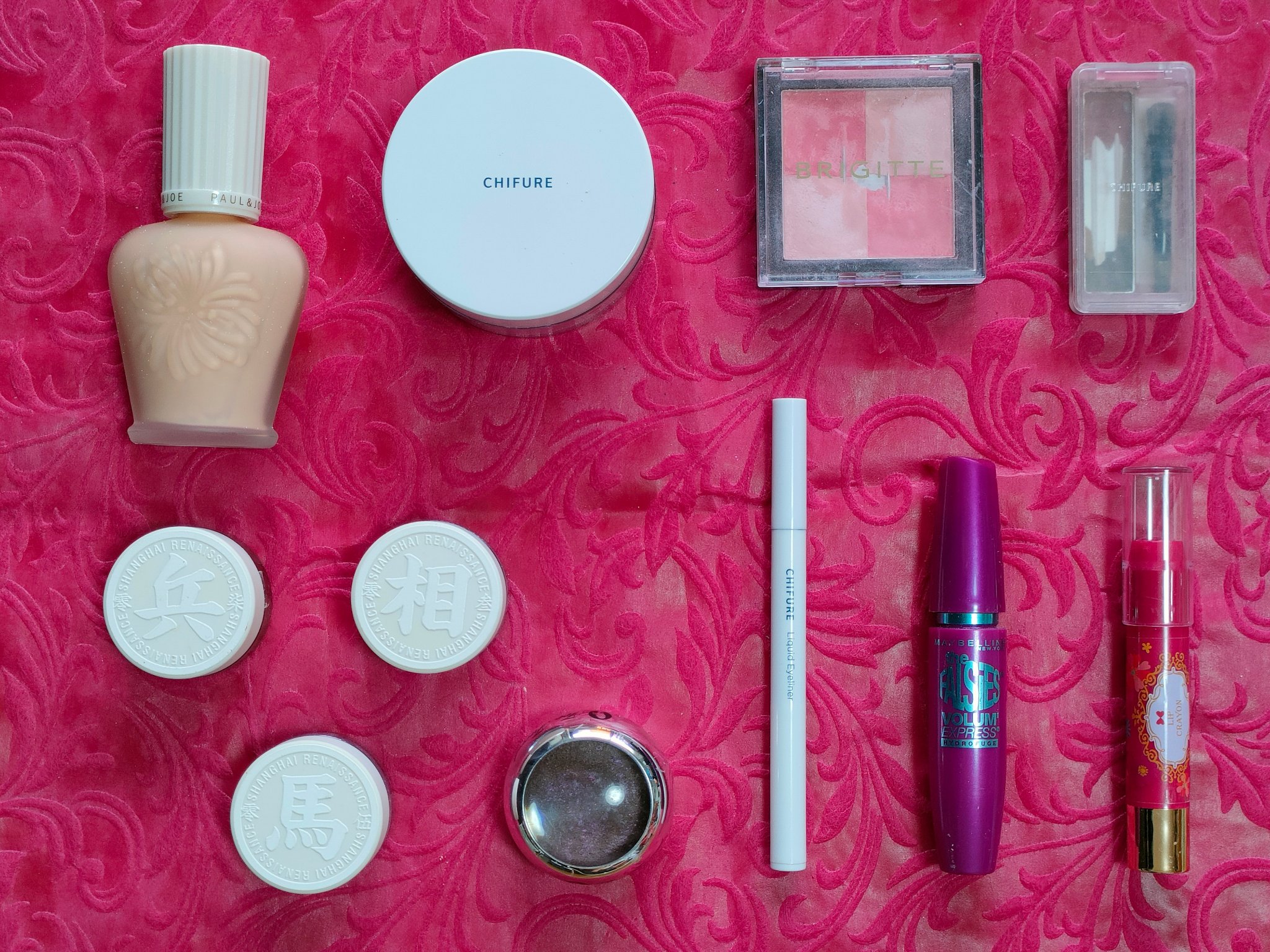 アリィー ニュアンスチェンジUV ジェル RSを、顔全体にまんべんなく塗ります。 RMK RMK ジェルクリーミィファンデーション 103を、顔全体にまんべんなく塗ります。 ジョンソンベビー ジョンソン ベビーパウダーを、顔全体にまんべんなく軽くはたきます。 THE BODY SHOP bronze shade warm glowを、両頬に塗ります。 KATE リフレクトミラーアイズ BR-1の締め色を、眉毛全体にまんべんなく塗ります。 URGLAM UR GLAMBLOOMING EYE COLOR PALETTE 01を、使用しました。 ちふれ リキッド アイライナー 筆ペンタイプ BK30 ブラックを、塗ります。 CEZANNE エアリーカールマスカラを、まつ毛全体にまんべんなく塗ります。 MAYBELLINE NEW YORK コロッサルボリュームエクスプレスを、まつ毛全体にまんべんなく塗ります。 MAYBELLINE NEW YORK SPステイ マットインク 135を、唇全体にまんべんなく塗ります。