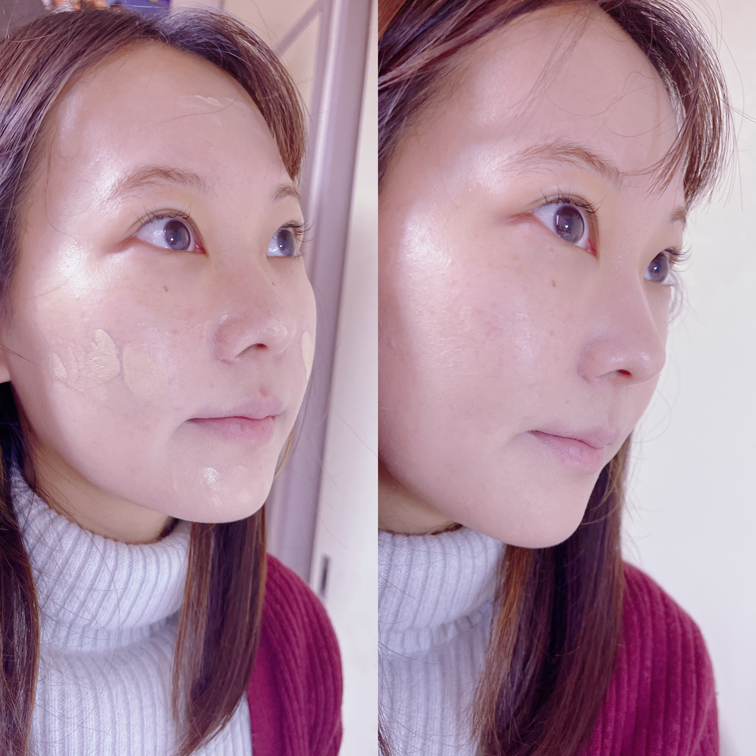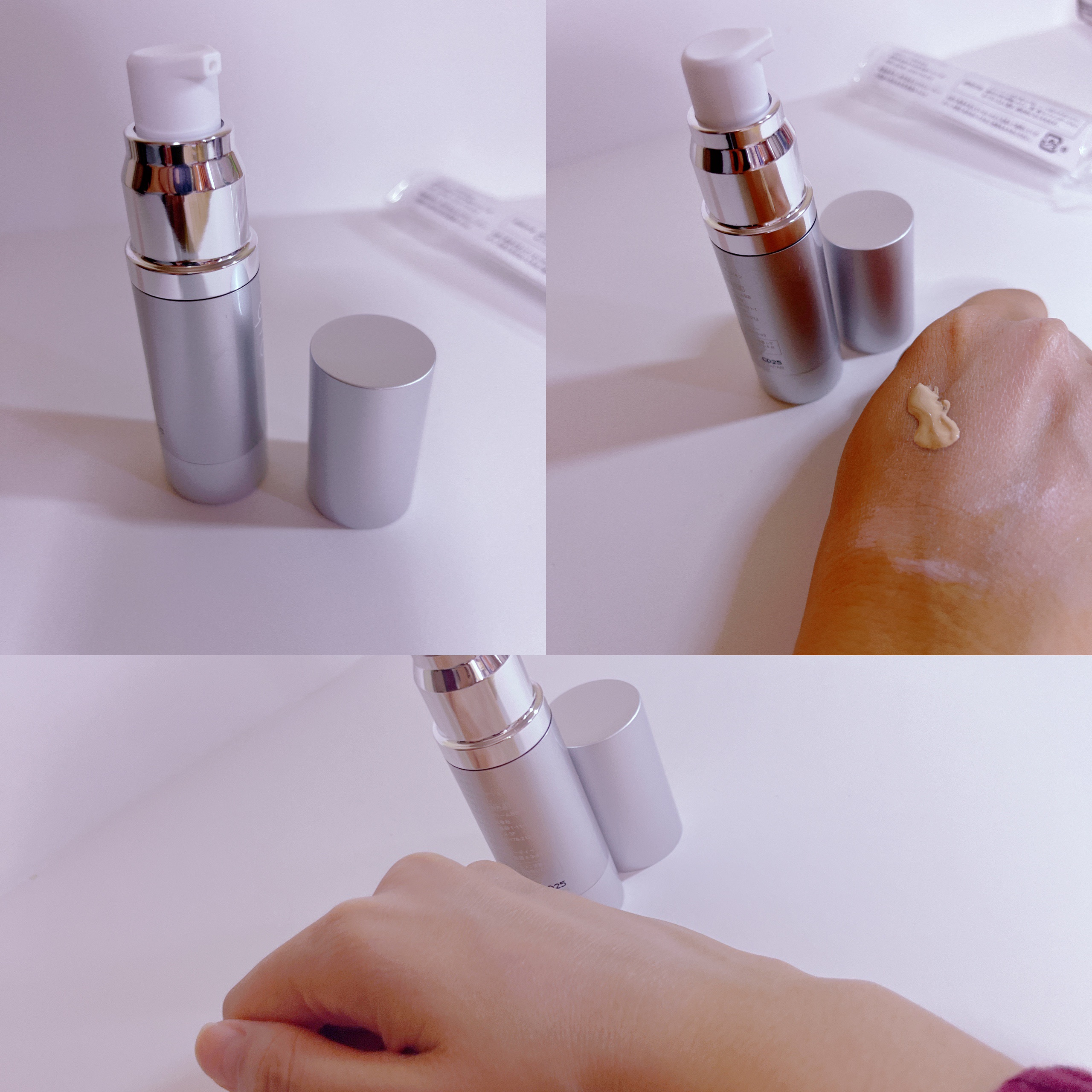手に取ってみると、なめらかな感触で伸びがいいです。乗せた時密着感があります。 テクスチャは軽く肌馴染みが良く、軽くトーンアップしてくれます。 薄いオレンジ色ぽい感じで、薄い色のシミを少し隠してくれる感じです。 他のファンデーションと重ねてもモロモロがでるとかムラになるとかもなかったので使いやすいです。 手に取ると淡いベージュ色だけど、肌に乗せてみると白っぽくなり、肌色補整とトーンアップ効果があります。 日焼け止め効果もしっかりあるのでひとつあると便利かも。