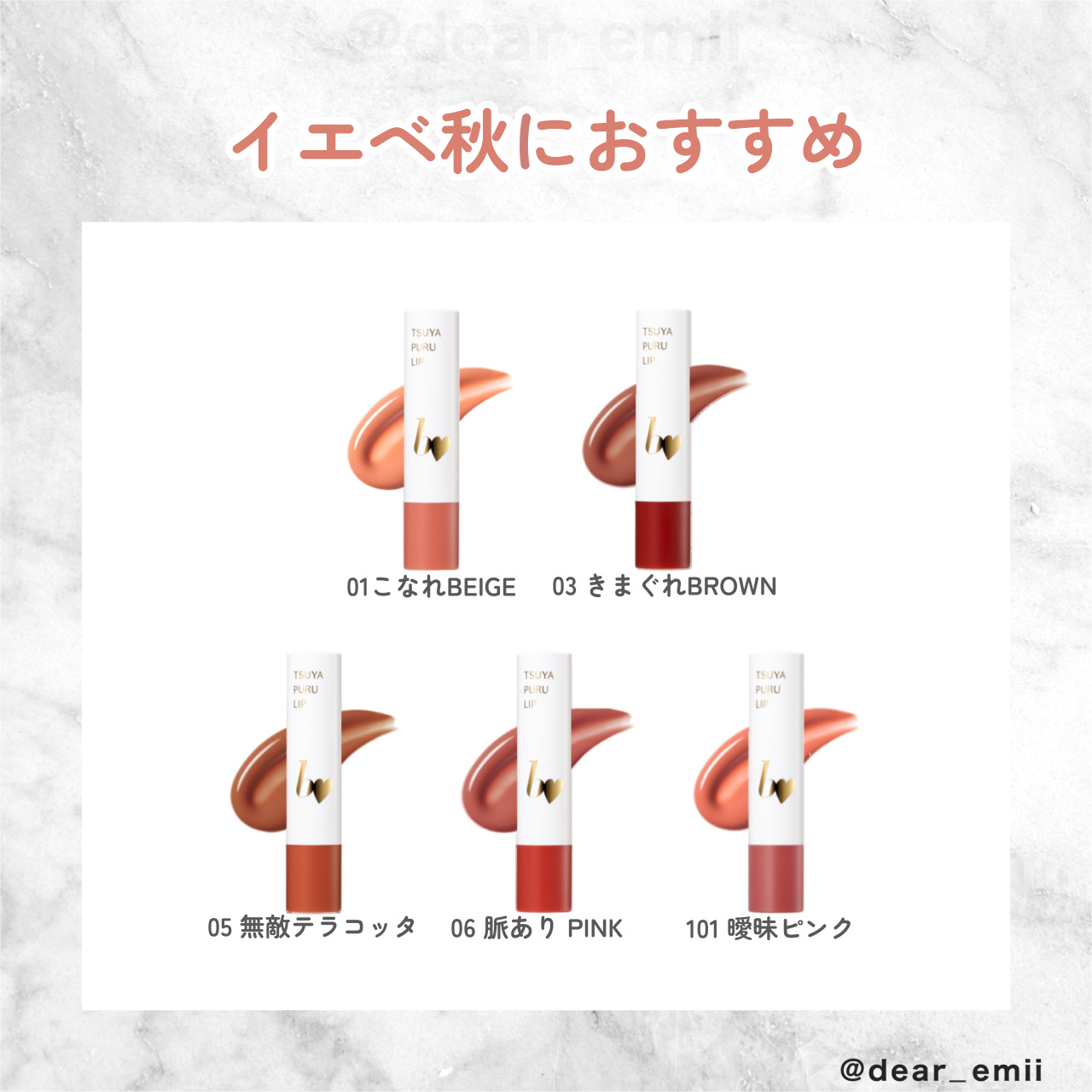 - いつも、“つやぷる”なくちびるで。 1度塗りでシアー、重ねて色気 美容成分(*1)配合で保湿×キレイに発色×ボリュームUP(*2) ティント処方じゃなくても色持ちが持続する処方にリニューアル。 オイル・保湿成分(*1)が唇の上にピタッと密着。 保湿膜をつくることで、ツヤ感・色持ち・唇ケアを同時に叶えます。 従来の“うるおい&発色”はそのままに、ツヤとうるおいをキープする新しい「つやぷるリップ」です。 グレープフルーツの香り。 *1アルガニアスピノサ核油、ホホバ種子油、ヒアルロン酸Na *2メイクアップ効果 ※2023/3/31 リニューアル