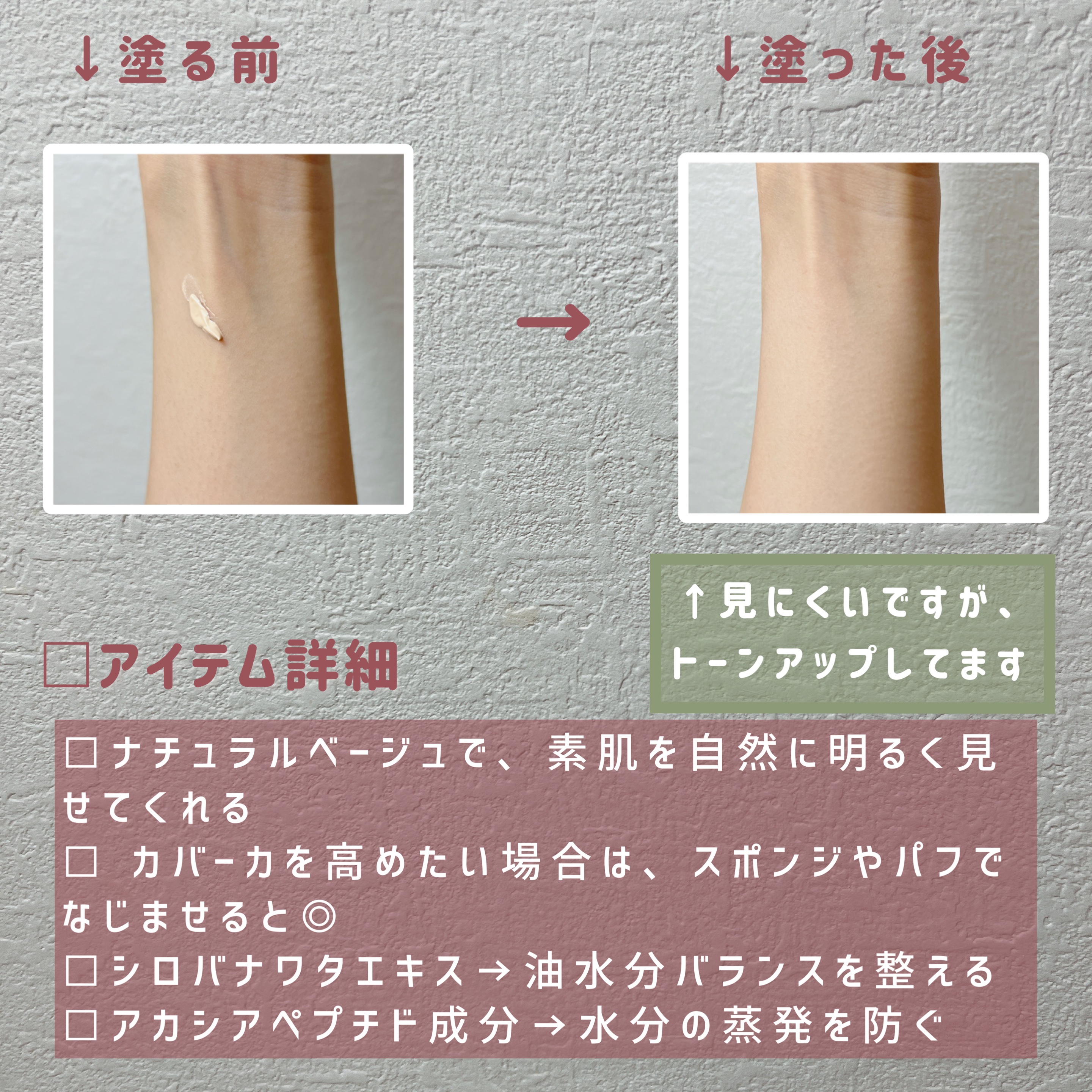 こちらは基本は、ファンデーション、下地、日焼け止め 3役として使える優れもの。 きちんとメイクはしたいけど、厚塗りは嫌だし、面倒くさい、、という時におすすめです☺️ やや艶肌よりに仕上がります✨
