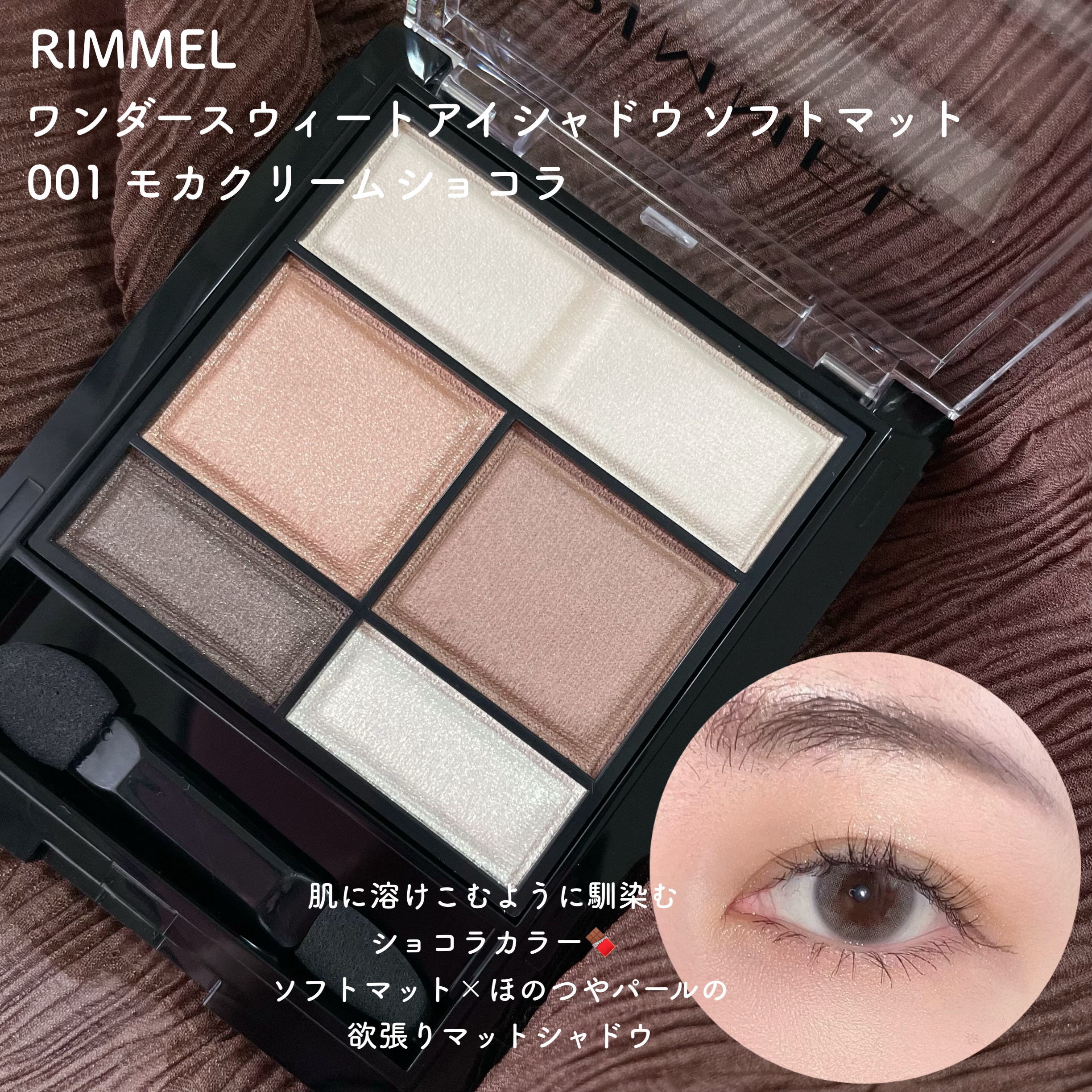 プチプラとは思えない上品さ💠 RIMMEL @rimmellondon_jp ワンダー スウィート アイシャドウ ソフトマット 相変わらずの粉質の良さでグラデが作りやすい!!ラメは"ほのツヤパール"と銘打ってるほんのりツヤとラメが足される絶妙具合🥹 ほんのりなパール感が上品さを際立ててくれて私大人なメイクしてます!!(でも実はプチプラ)っていう雰囲気を楽しめるよ💗