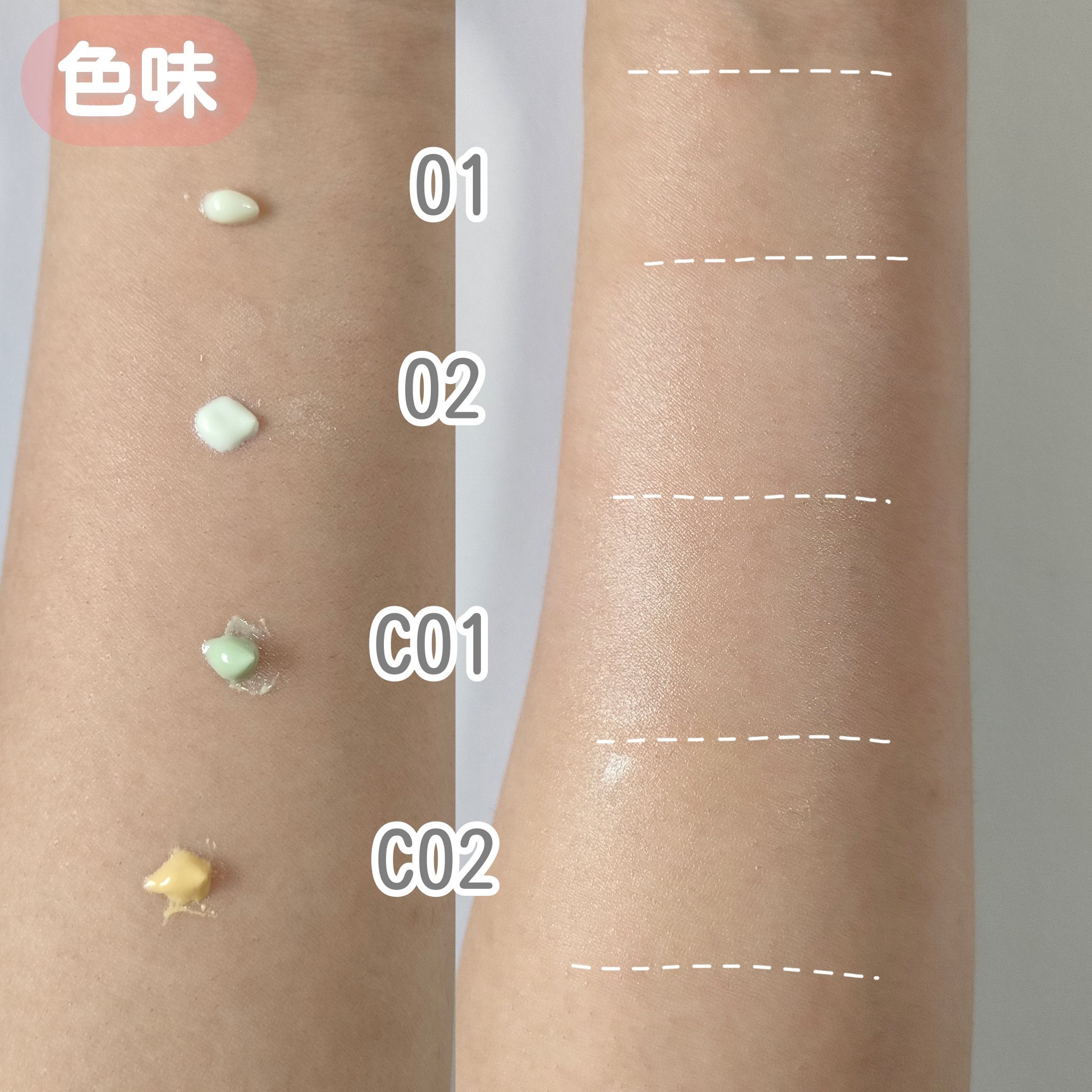 - <01 透明> 水、メトキシケイヒ酸エチルヘキシル、BG、ジエチルアミノヒドロキシベンゾイル安息香酸ヘキシル、酸化亜鉛、ラウリン酸メチルへプチル、酸化チタン、ジメチコン、(アクリル酸ヒドロキシエチル/アクリロイルジメチルタウリンNa)コポリマー、シクロペンタシロキサン、ビスエチルヘキシルオキシフェノールメトキシフェニルトリアジン、リンゴ酸ジイソステアリル、水酸化Al、PEG-60水添ヒマシ油、ステアリン酸、フェノキシエタノール、ポリグリセリル-3ポリジメチルシロキシエチルジメチコン、ポリヒドロキシステアリン酸、ホホバエステル、キサンタンガム、アルギニン、ヒアルロン酸Na、α-グルカン、フィチン酸、ユキノシタエキス、グルコシルセラミド、ソメイヨシノ葉エキス、ハトムギ種子エキス、マグワ根皮エキス、メマツヨイグサ種子エキス、酸化銀、セイヨウナツユキソウ花エキス、ビルベリー葉エキス、アーチチョーク葉エキス <02 ホワイト> 水、メトキシケイヒ酸エチルヘキシル、BG、酸化チタン、ジエチルアミノヒドロキシベンゾイル安息香酸ヘキシル、酸化亜鉛、ラウリン酸メチルへプチル、ジメチコン、(アクリル酸ヒドロキシエチル/アクリロイルジメチルタウリンNa)コポリマー、シクロペンタシロキサン、ビスエチルヘキシルオキシフェノールメトキシフェニルトリアジン、リンゴ酸ジイソステアリル、オクチルドデカノール、水酸化Al、PEG-60水添ヒマシ油、ポリグリセリル-3ポリジメチルシロキシエチルジメチコン、ステアリン酸、フェノキシエタノール、ポリヒドロキシステアリン酸、ホホバエステル、キサンタンガム、トリヒドロキシステアリン、アルミナ、シリカ、アルギニン、ヒアルロン酸Na、α-グルカン、フィチン酸、ユキノシタエキス、グルコシルセラミド、ソメイヨシノ葉エキス、ハトムギ種子エキス、マグワ根皮エキス、メマツヨイグサ種子エキス、酸化銀、セイヨウナツユキソウ花エキス、ビルベリー葉エキス、アーチチョーク葉エキス <C01 CICAミント> 水、メトキシケイヒ酸エチルヘキシル、BG、ジエチルアミノヒドロキシベンゾイル安息香酸ヘキシル、酸化チタン、酸化亜鉛、ラウリン酸メチルへプチル、ジメチコン、(アクリル酸ヒドロキシエチル/アクリロイルジメチルタウリンNa)コポリマー、シクロペンタシロキサン、ビスエチルヘキシルオキシフェノールメトキシフェニルトリアジン、リンゴ酸ジイソステアリル、オクチルドデカノール、水酸化Al、PEG-60水添ヒマシ油、ポリグリセリル-3ポリジメチルシロキシエチルジメチコン、ステアリン酸、フェノキシエタノール、ポリヒドロキシステアリン酸、ホホバエステル、香料、キサンタンガム、酸化鉄、グンジョウ、トリヒドロキシステアリン、アルミナ、トリイソステアリン酸ポリグリセリル-2、青1、シリカ、アルギニン、ヒアルロン酸Na、α-グルカン、フィチン酸、ユキノシタエキス、グルコシルセラミド、ソメイヨシノ葉エキス、酸化銀、ハトムギ種子エキス、マグワ根皮エキス、メマツヨイグサ種子エキス、トコフェロール、セイヨウナツユキソウ花エキス、ビルベリー葉エキス、ツボクサ葉エキス、アーチチョーク葉エキス <C03 ピュアパープル> 水、メトキシケイヒ酸エチルヘキシル、BG、酸化チタン、ジエチルアミノヒドロキシベンゾイル安息香酸ヘキシル、酸化亜鉛、ラウリン酸メチルへプチル、ジメチコン、(アクリル酸ヒドロキシエチル/アクリロイルジメチルタウリンNa)コポリマー、シクロペンタシロキサン、エチルヘキサン酸セチル、ビスエチルヘキシルオキシフェノールメトキシフェニルトリアジン、リンゴ酸ジイソステアリル、オクチルドデカノール、水酸化Al、PEG-60水添ヒマシ油、ポリグリセリル-3ポリジメチルシロキシエチルジメチコン、ステアリン酸、フェノキシエタノール、ポリヒドロキシステアリン酸、ホホバエステル、トリイソステアリン酸ポリグリセリル-2、キサンタンガム、トリヒドロキシステアリン、青1、赤226、アルミナ、ナイアシンアミド、シリカ、アルギニン、ヒアルロン酸Na、α-グルカン、フィチン酸、ユキノシタエキス、グルコシルセラミド、ソメイヨシノ葉エキス、マグワ根皮エキス、酸化銀、ハトムギ種子エキス、メマツヨイグサ種子エキス、セイヨウナツユキソウ花エキス、ビルベリー葉エキス、アーチチョーク葉エキス <C02 サニーイエロー> 水、メトキシケイヒ酸エチルヘキシル、BG、酸化チタン、ジエチルアミノヒドロキシベンゾイル安息香酸ヘキシル、酸化亜鉛、ラウリン酸メチルへプチル、ジメチコン、(アクリル酸ヒドロキシエチル/アクリロイルジメチルタウリンNa)コポリマー、シクロペンタシロキサン、ビスエチルヘキシルオキシフェノールメトキシフェニルトリアジン、リンゴ酸ジイソステアリル、オクチルドデカノール、水酸化Al、PEG-60水添ヒマシ油、ポリグリセリル-3ポリジメチルシロキシエチルジメチコン、酸化鉄、ステアリン酸、フェノキシエタノー