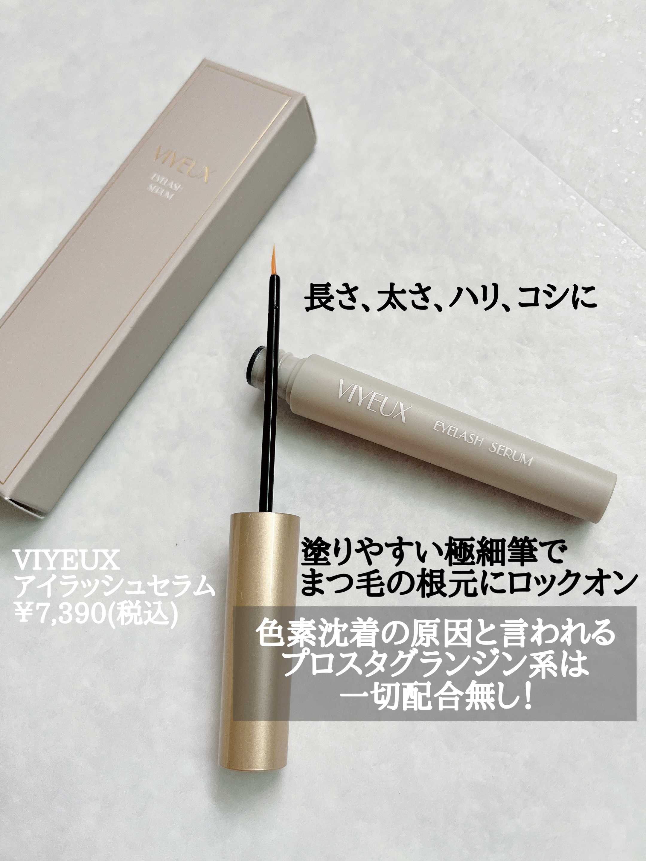 目元への色素沈着や眼瞼下垂などの原因となるプロスタグランジン系の成分を一切配合せず、徹底的に成分にこだわって効果と目への優しさを両立させたまつ毛美容液。 細い筆タイプでまつ毛の上下のキワに塗りやすくアイラインを引くようにスーッと塗布することが出来ます! 1本1本がしっかりしてきて長さもでているかな?という感じ♡ ハリとコシがでて抜けにくくなった気もして色素沈着がないのも嬉しい!