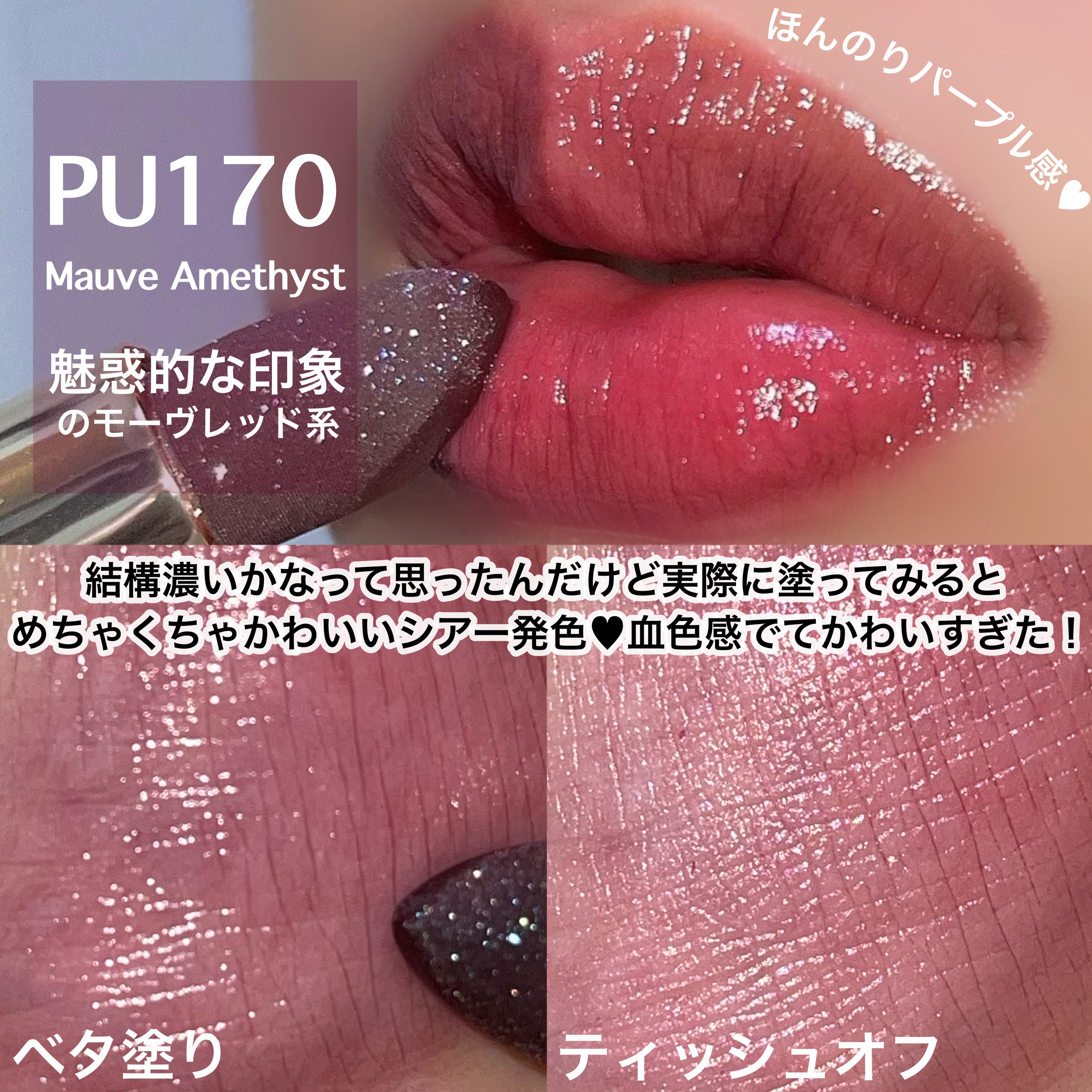 - 宝石のような輝きをまとうティントリップバーム。 唇をケアしながら、自然な血色感をプラスし、ピュアな唇へと導く。 BE370 コーラルクォーツ:カジュアルな印象のコーラル系 OR270 サンストーン:フレッシュな印象のオレンジ系 PK871 レッドルビー:キュートな印象のルビー系 PU170 モーヴアメジスト(限定色):魅惑的な印象のモーヴレッド系 RD470 ディープガーネット(限定色):熟した果実のようなレッド系
