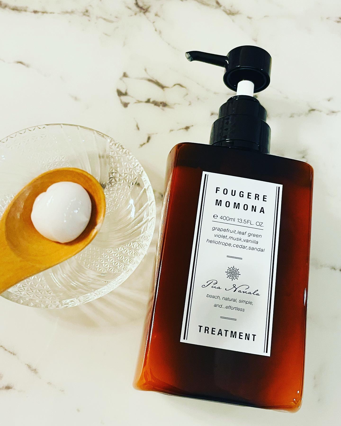 - ■こだわり処方のシャンプー&トリートメント アミノ酸+植物系の洗浄成分*¹で地肌と髪を優しく洗い上げます。5種類のプロテイン成分*²配合でダメージを補修し広がりにくい髪に。また、8種のアミノ酸*³がキューティクルに潤いを与え艶やかな髪に。 ■厳選された天然美容成分配合 大地の天然美容成分「タマヌオイル*⁴」配合で紫外線などのダメージでパサついた髪に潤いを与えます。室戸岬の深海から汲みだされたミネラル豊富な水を使用。 ■10種のオーガニック成分*⁵ 10種のオーガニック成分*⁵を配合することによってパサつく髪もしっかり潤ってまとまる髪へ。 深いコクのあるフゼアモモナの香り フレッシュなシトラスグリーンのトップノートにラベンダー、ローズなどのフローラルブーケのミドルノートに加え、ムスクを中心にした深いフゼアにほんのりバニラの甘さを加えたフゼアモモナの香りです。 *¹コカミドプロピルベタイン、ラウロイルメチルアラニンNa、コカミドDEA *²加水分解ローヤルゼリー、加水分解コメタンパク、加水分解コラーゲン、加水分解ケラチン(羊毛)、アーモンドタンパク(毛髪補修成分) *³・セリン、グリシン、アラニン、リシン、トレオニン、プロリン、アルギニン、グルタミン酸(保湿成分) *⁴テリハボク種子油(保湿成分) *⁵オリーブ果実油、ホホバ種子油、ツバキ種子、ゴマ油、アルガニアスピノサ核油、カニナバラ果実エキス、セージ葉エキス、ラベンダー花エキス、ローズマリー葉エキス、ビルベリー葉エキス(保湿成分)