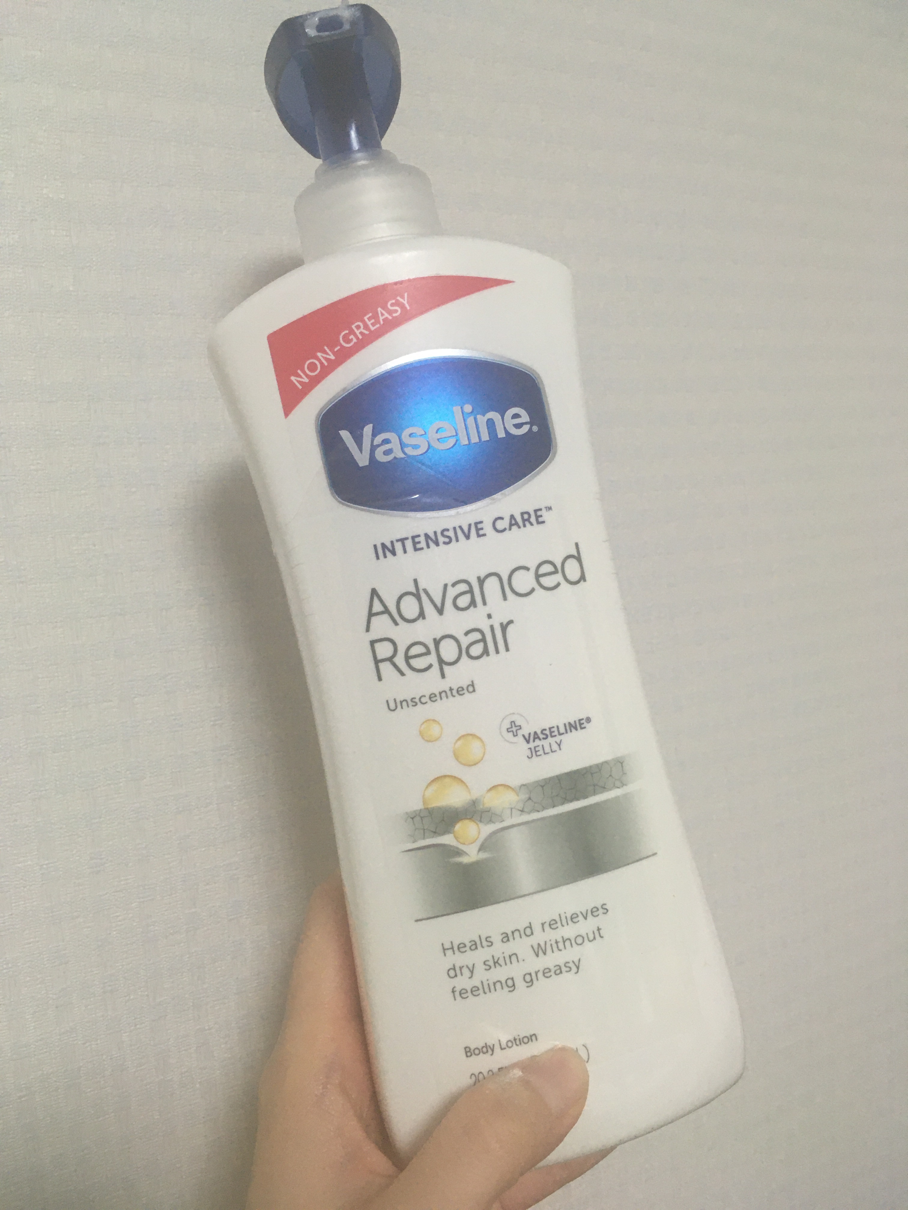 ★ヴァセリンアドバンスドリペアボディローション無香料★ベタベタするのかと思いきや、しっとりするけどサラッと保湿。【良かった点】・広げると乳液と化粧水の中間テクスチャー・しっとりするのにベタベタしない・すぐに服着れる・塗った後も柔らかいお肌に・...