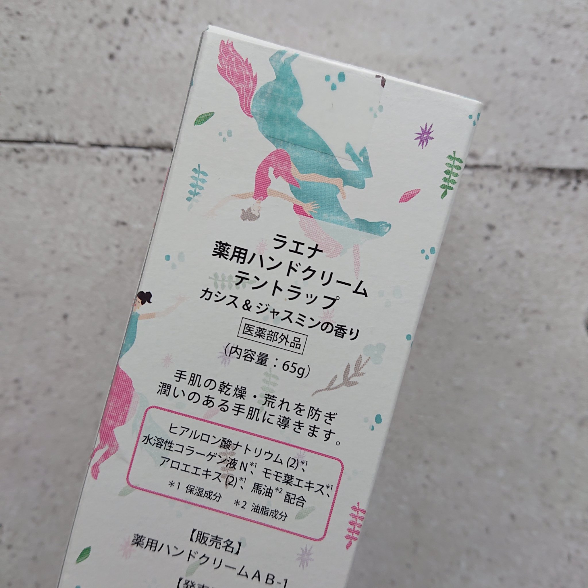 ラエナ💕薬用ハンドクリームテントラップカシス&ジャスミンの香りドン・キホーテで安かったので、仕事中にたっぷり使うために購入しました🍀あなたの手、指先まで包み込む。手荒れ、乾燥にサヨナラ。▓こんな方におすすめ▓☑自分の手を見られるのが恥ずかしい...