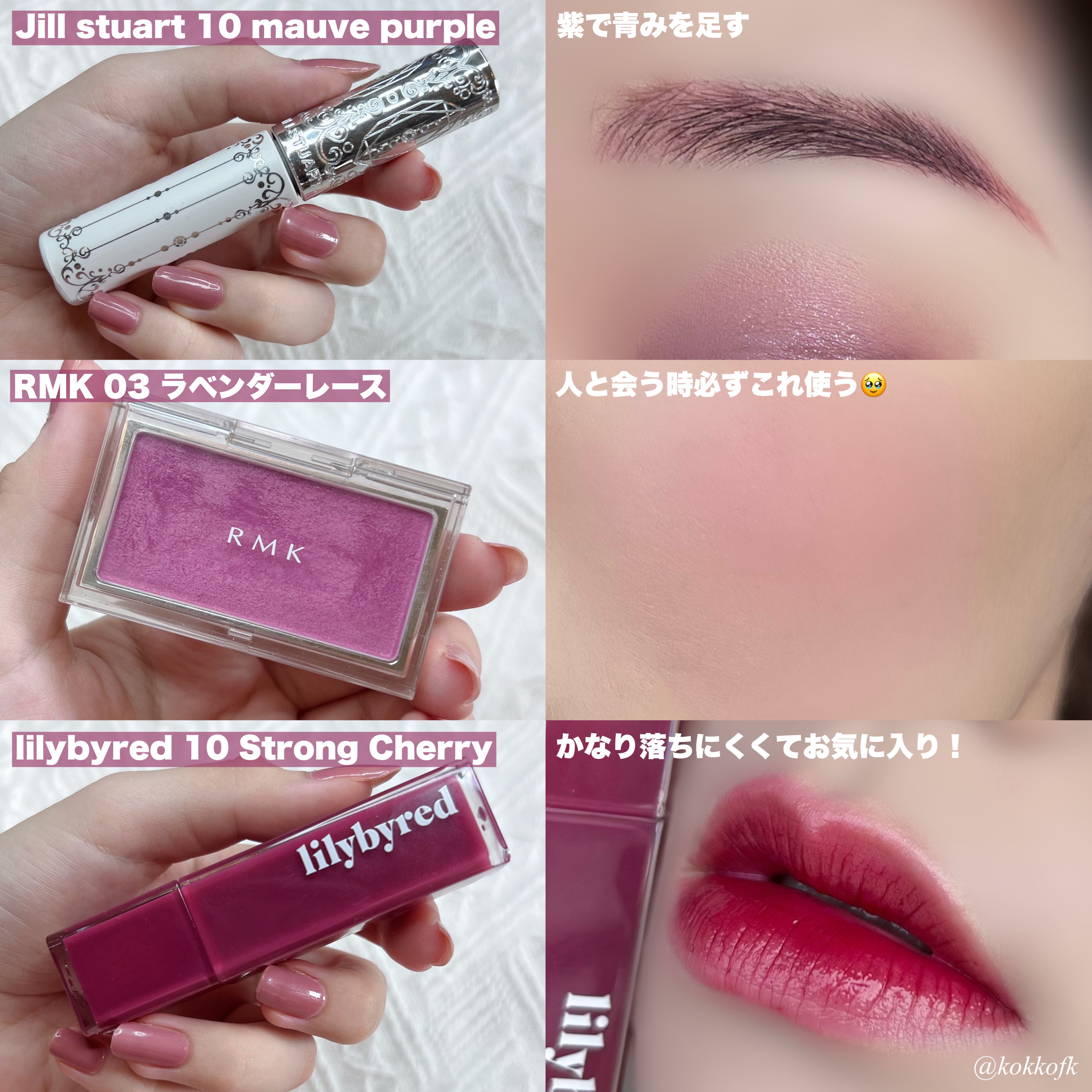 rom&nd────────────ベターザンパレット06 PEONY NUDE GARDEN (¥2900) rom&nd────────────ベターザンアイズ W03 Dry Strawberry (¥1569) HOLIKA HOLIKA────────────マイフェブムードアイパレットMOONY (¥2050) HOLIKA HOLIKA────────────マイフェブムードアイパレットPINK OLOGY (¥2050) CLIO────────────プロ アイ パレット13 PICNIC BY THE SUNSET (¥2390) PERIPERA────────────オール テイク ムード パレット04 MUTEFUL ROSE (¥1590) PERIPERA────────────オール テイク ムード パレット09 MOONLIKE LAVENDER PINK (¥1590) PERIPERA────────────インク ポケット シャドウ パレット05 TOUCHING TARO STARS (¥1190)
