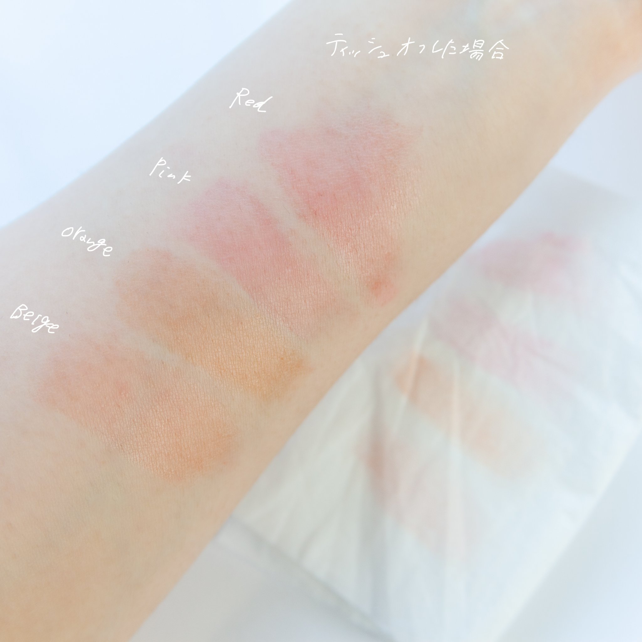 - <ピンク> スクワラン、トリ(カプリル酸/カプリン酸)グリセリル、パラフィン、水添ポリイソブテン、リンゴ酸ジイソステアリル、メトキシケイヒ酸エチルヘキシル、ビスジグリセリルポリアシルアジペート-2、トリポリヒドロキシステアリン酸ジペンタエリスリチル、ワセリン、シア脂、ポリエチレン、水添野菜油、アボカド油、トリイソステアリン酸ポリグリセリル-2、マイクロクリスタリンワックス、t-ブチルメトキシジベンゾイルメタン、オリーブ果実油、(VP/エイコセン)コポリマー、酸化チタン、ペンチレングリコール、黄4、赤202、赤201、マイカ、赤218、ホホバ種子油、アルガニアスピノサ核油、水酸化Al、酸化スズ <ブラウン> スクワラン、トリ(カプリル酸/カプリン酸)グリセリル、パラフィン、水添ポリイソブテン、メトキシケイヒ酸エチルヘキシル、リンゴ酸ジイソステアリル、ビスジグリセリルポリアシルアジペート-2、トリポリヒドロキシステアリン酸ジペンタエリスリチル、ワセリン、シア脂、ポリエチレン、水添野菜油、アボカド油、トリイソステアリン酸ポリグリセリル-2、マイクロクリスタリンワックス、t-ブチルメトキシジベンゾイルメタン、酸化鉄、(VP/エイコセン)コポリマー、オリーブ果実油、青1、ペンチレングリコール、酸化チタン、マイカ、赤223、ホホバ種子油、アルガニアスピノサ核油、酸化スズ <ベージュ> スクワラン、トリ(カプリル酸/カプリン酸)グリセリル、パラフィン、水添ポリイソブテン、リンゴ酸ジイソステアリル、メトキシケイヒ酸エチルヘキシル、ビスジグリセリルポリアシルアジペート-2、トリポリヒドロキシステアリン酸ジペンタエリスリチル、ワセリン、シア脂、ポリエチレン、水添野菜油、アボカド油、トリイソステアリン酸ポリグリセリル-2、マイクロクリスタリンワックス、t-ブチルメトキシジベンゾイルメタン、酸化チタン、酸化鉄、(VP/エイコセン)コポリマー、オリーブ果実油、ペンチレングリコール、マイカ、黄4、赤202、酸化スズ、水酸化Al、赤223、ホホバ種子油、アルガニアスピノサ核油 <レッド> スクワラン、トリ(カプリル酸/カプリン酸)グリセリル、パラフィン、水添ポリイソブテン、リンゴ酸ジイソステアリル、メトキシケイヒ酸エチルヘキシル、ビスジグリセリルポリアシルアジペート-2、トリポリヒドロキシステアリン酸ジペンタエリスリチル、ワセリン、シア脂、ポリエチレン、水添野菜油、アボカド油、トリイソステアリン酸ポリグリセリル-2、マイクロクリスタリンワックス、t-ブチルメトキシジベンゾイルメタン、(VP/エイコセン)コポリマー、オリーブ果実油、酸化チタン、ペンチレングリコール、黄4、赤201、マイカ、赤202、酸化スズ、赤218、ホホバ種子油、アルガニアスピノサ核油 <オレンジ> スクワラン、トリ(カプリル酸/カプリン酸)グリセリル、パラフィン、水添ポリイソブテン、リンゴ酸ジイソステアリル、メトキシケイヒ酸エチルヘキシル、ビスジグリセリルポリアシルアジペート-2、トリポリヒドロキシステアリン酸ジペンタエリスリチル、ワセリン、シア脂、ポリエチレン、水添野菜油、アボカド油、トリイソステアリン酸ポリグリセリル-2、マイクロクリスタリンワックス、t-ブチルメトキシジベンゾイルメタン、酸化鉄、(VP/エイコセン)コポリマー、オリーブ果実油、ペンチレングリコール、黄4、酸化チタン、マイカ、赤223、ホホバ種子油、アルガニアスピノサ核油、酸化スズ