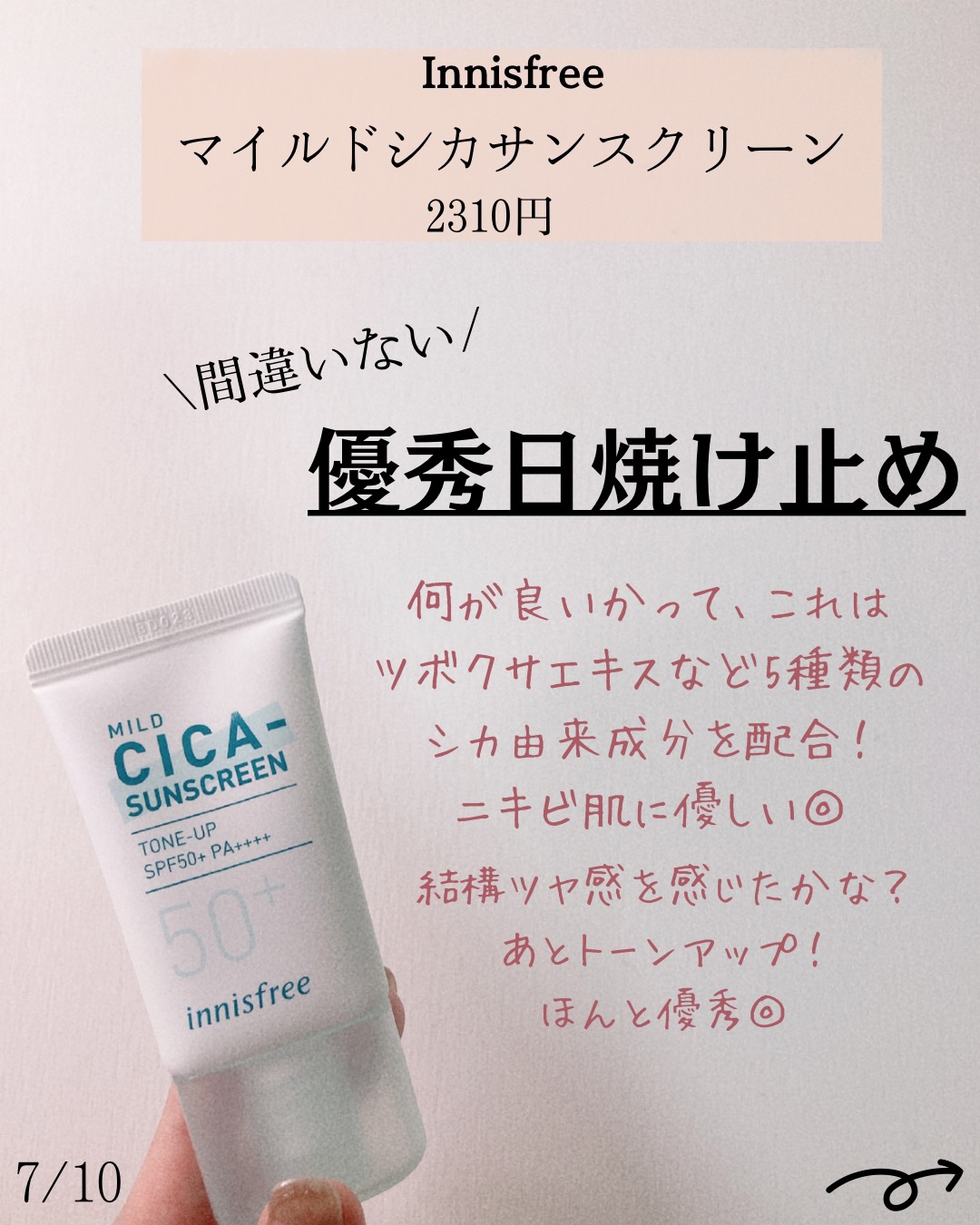 innisfree マイルド シカ サンスクリーン SPF50+ / PA++++ | 2,310円 |