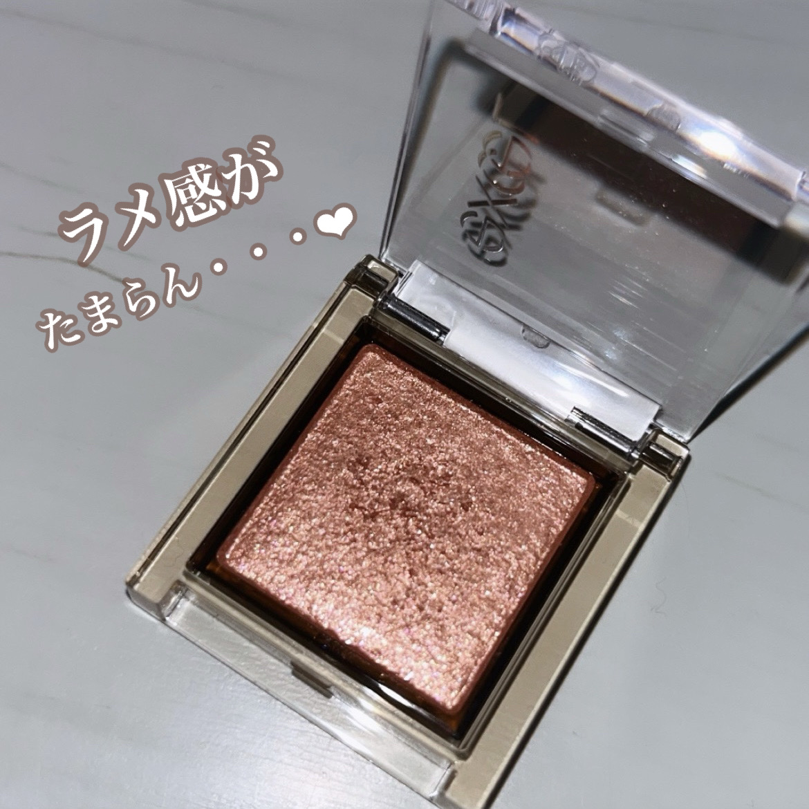 ほんのりブラウンに大粒のラメが入っているので 単色使いでナチュラルに綺麗めに仕上げてもOK❕ マットアイシャドウの上から重ねて塗るのもあり👌🏻 ̖́- ラメ×ラメの組み合わせで派手に決めるのも可愛い🤎
