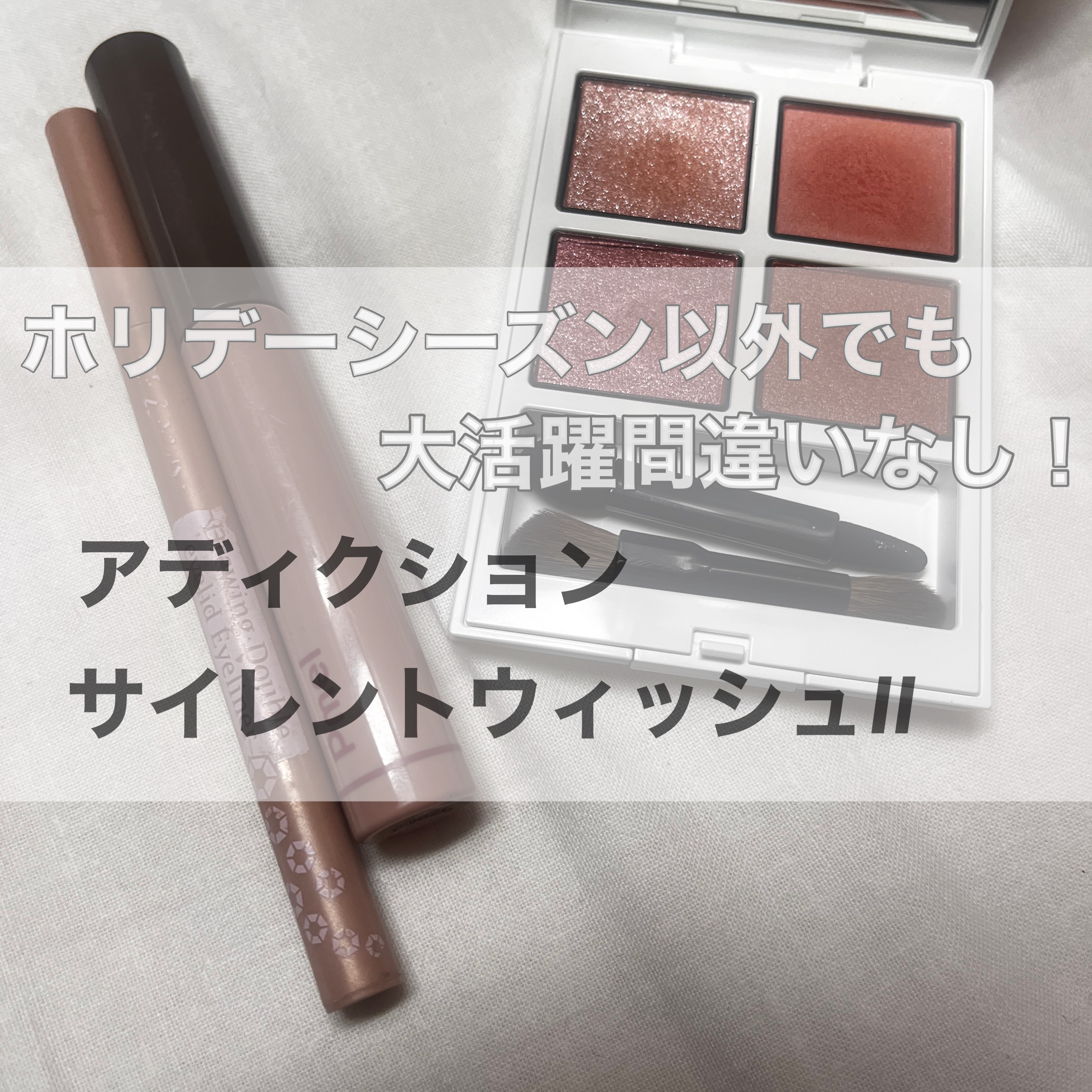 🐈⬛ADDICTIONホリデーアディクションサイレントウィッシュⅠ🐾去年のホリデーもどんどん使ってく~。右上アイホール左下二重幅広め、下まぶた右下二重幅左上目頭から黒目上ピンクとパープルは好きな色の組み合わせでした。使うものはどんどん使う。...