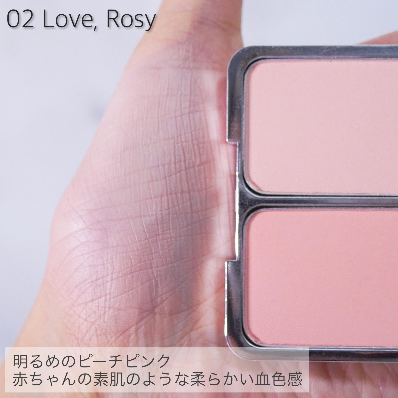 バラの型押しがとても美しい 左上のカラーはシマーかと思いきやブルーを含む多色ラメ 上段2色は柔らかい粉質で下段2色が少し硬めだけれど、ブレンドはしやすい 買うつもりなかったのに実物見たら買ってしまっていたので、ぜひ実物をチェックしてみてね🌹