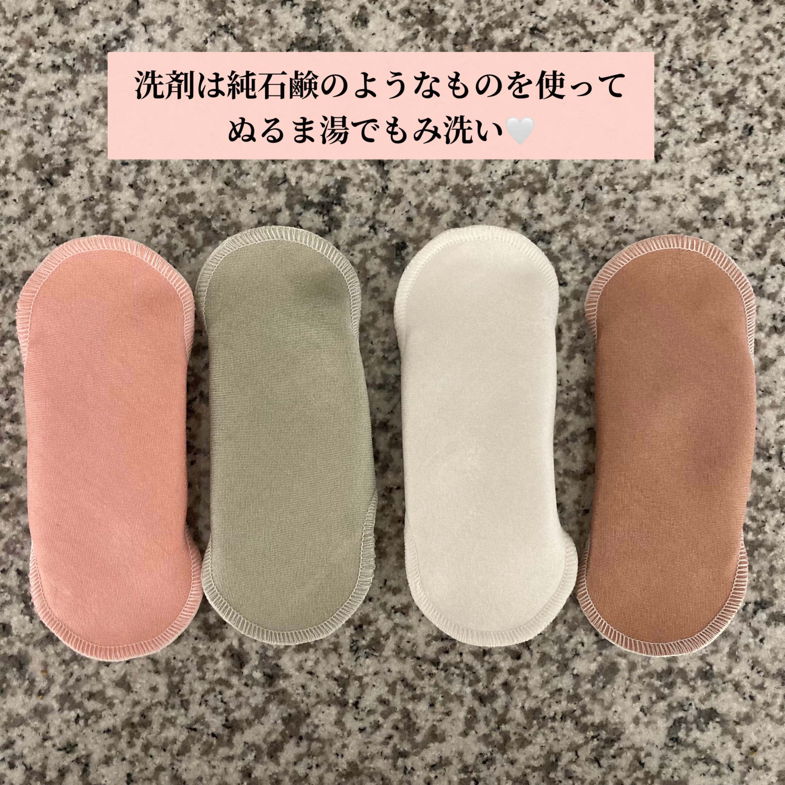 アンダーホルダーは、布ナプキンをしっかりと ショーツに固定できるように、コットンテープが 付いています。前後に2本ずつあるので、 外れる心配もなし🌞🌿 幅は18cm✖️長さ24cmなので、 漏れる心配もあまりありません◎ 布ナプキンは小判のハンカチーフ型で、 折りたたんで使うタイプ。 生地もしっとりして気持ち良いし 肌に当たった時の刺激感がない◎ 吸水力抜群のふわふわで、洗いやすく乾きやすいらしい。 外で替えを持っていなかったら、折りたたんで 面を変えるなどして使い回しも🙆♀️ いきなり全てを布ナプキンに変えるのは 難しいけど、徐々に紙ナプキンと併用 したりして、身体の不調を整えていこ😌