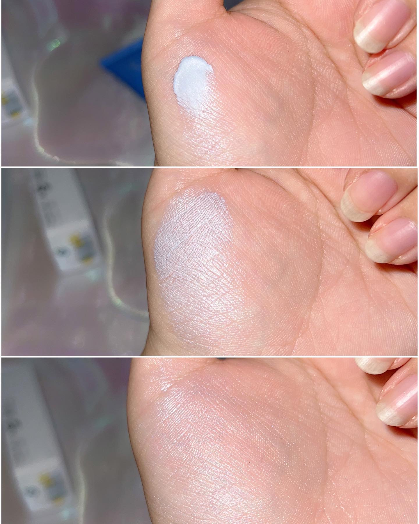 インスタライブでイガリさんが手の甲に出してスポンジで顔の中心部だけポンポンぬりしてて、真似したらすごく良かった! 透明感と立体感、チークの見え方もかわってきて、なにより夕方のくすみがきにならない。 自然光だとさらにきれいなのでぜひやってみてほしいです🙇