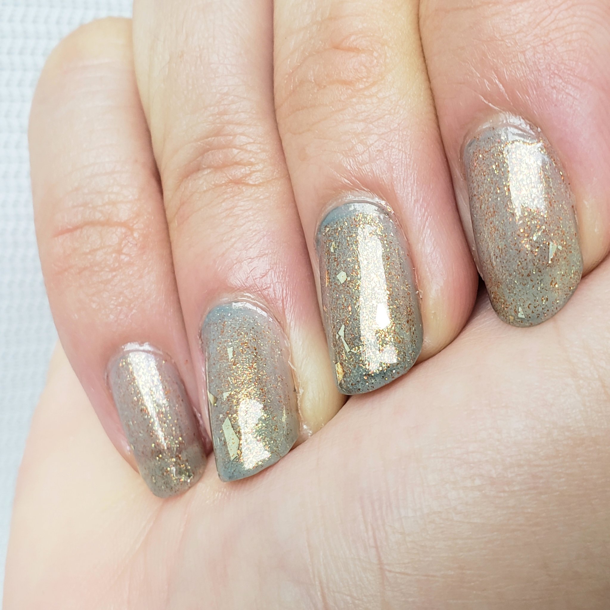 • 土木系おねいさん on LIPS 「週末ネイル💅くすみグリーンにオレンジのラメを重ねたら、あら不思..」(4枚目)