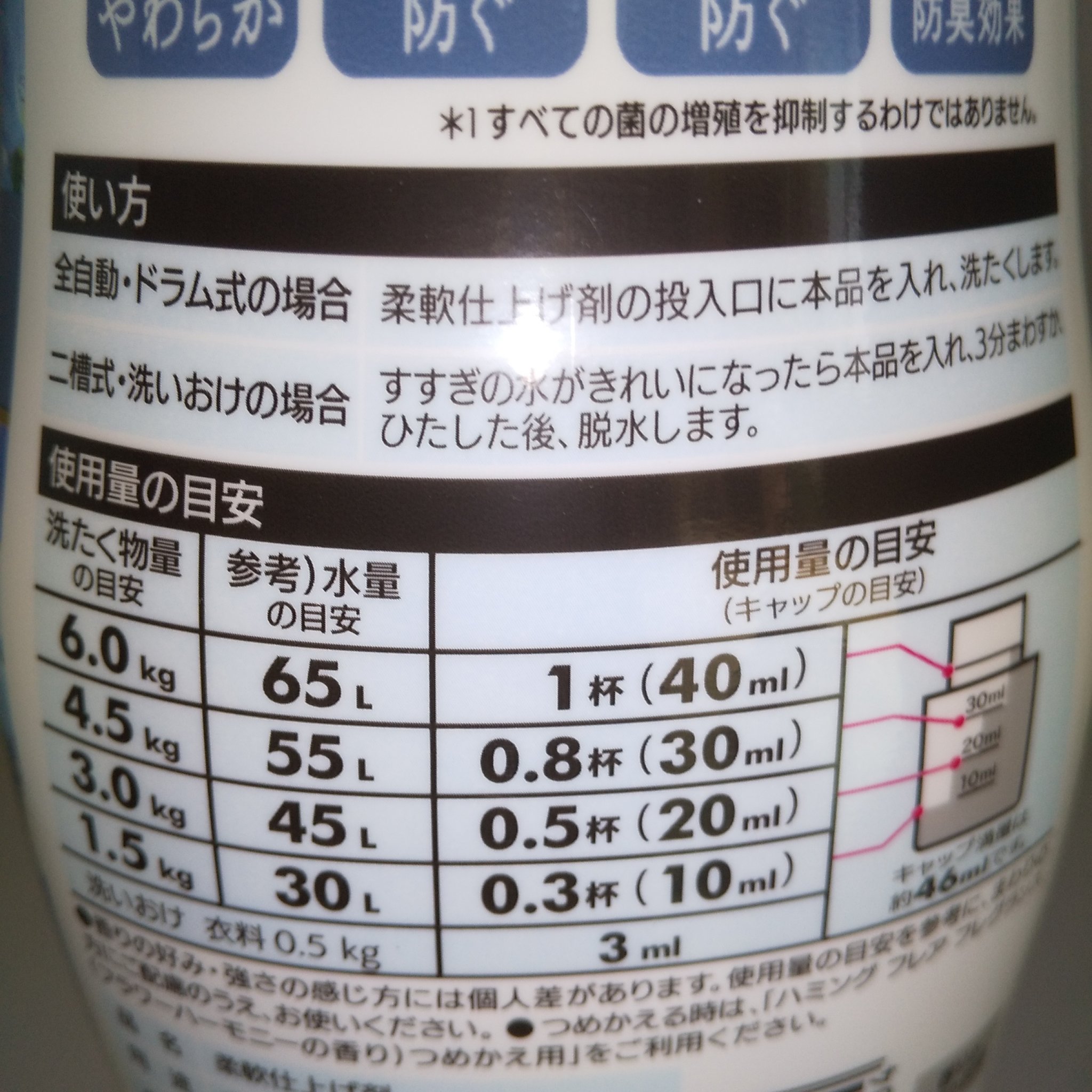- <本体 520ml> 界面活性剤(エステル型ジアルキルアンモニウム塩)、香料、安定化剤 <つめかえ用 380ml> 界面活性剤(エステル型ジアルキルアンモニウム塩)、香料、安定化剤 <スパウト 950ml> 界面活性剤(エステル型ジアルキルアンモニウム塩)、香料、安定化剤