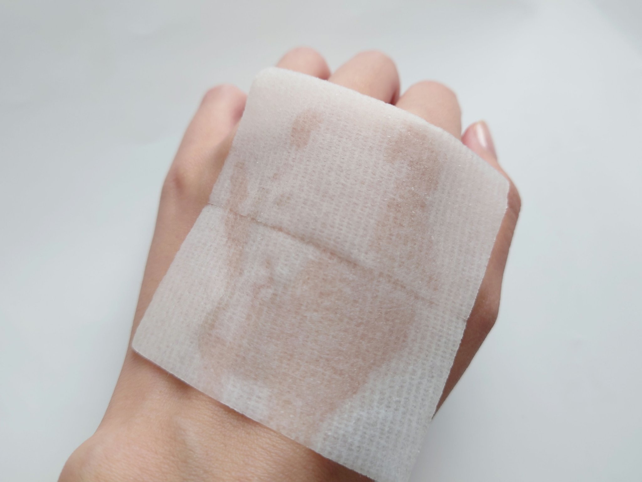 真ん中に点線があり半分にちぎることができます! 鼻やおでこ、あごなど半分にしてパックできるのがとても良かったです! ソフト面のほうは肌に優しく日々のスキンケアができて、デコボコ面は細かい凹凸で古い角質を取ることができるそうです! 刺激を感じたりなどがなかったです!