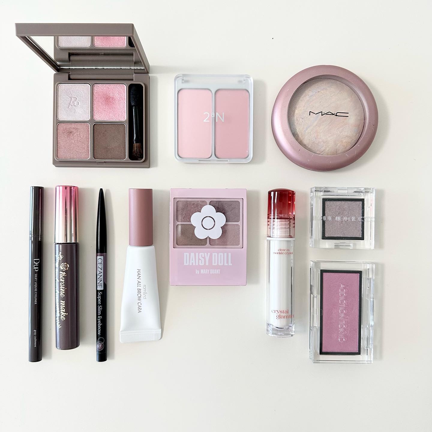 手に試した感じではベースのブルーは弱く、ラメ自体がブルーで可愛すぎる…! BAさんはパウダーアイシャドウのベースにもおすすめと教えてくれたので、 今日はこちらをベースにピンクブラウン系の アイシャドウを使ってメイクしてみたよ🫶🏻 肌に伸ばすとすぐにサラサラになるから ベタベタが残ったりしないし、 パウダーアイシャドウの上に重ねてもヨレない◎