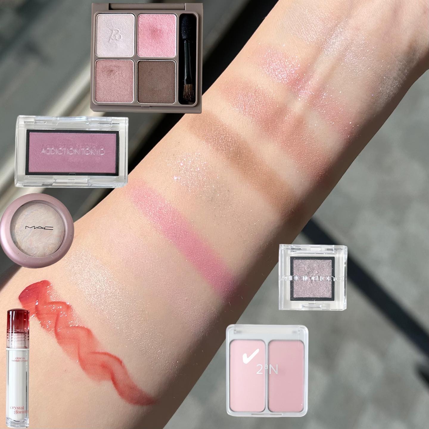 アイシャドウは実物の方が相当可愛い! 特に左上のラメの破壊力、、、 左側ボルドーは本当にふんわりと。 その上から右側のライラック?ピンクを 乗せると透明感爆発でした🥹👏🏻 本当にSUQQUは裏切らない可愛さ。 4月に発売されるもう一色のシグニチャーも、 5月発売のサマーもしっかり買うよ☺️❤️🔥