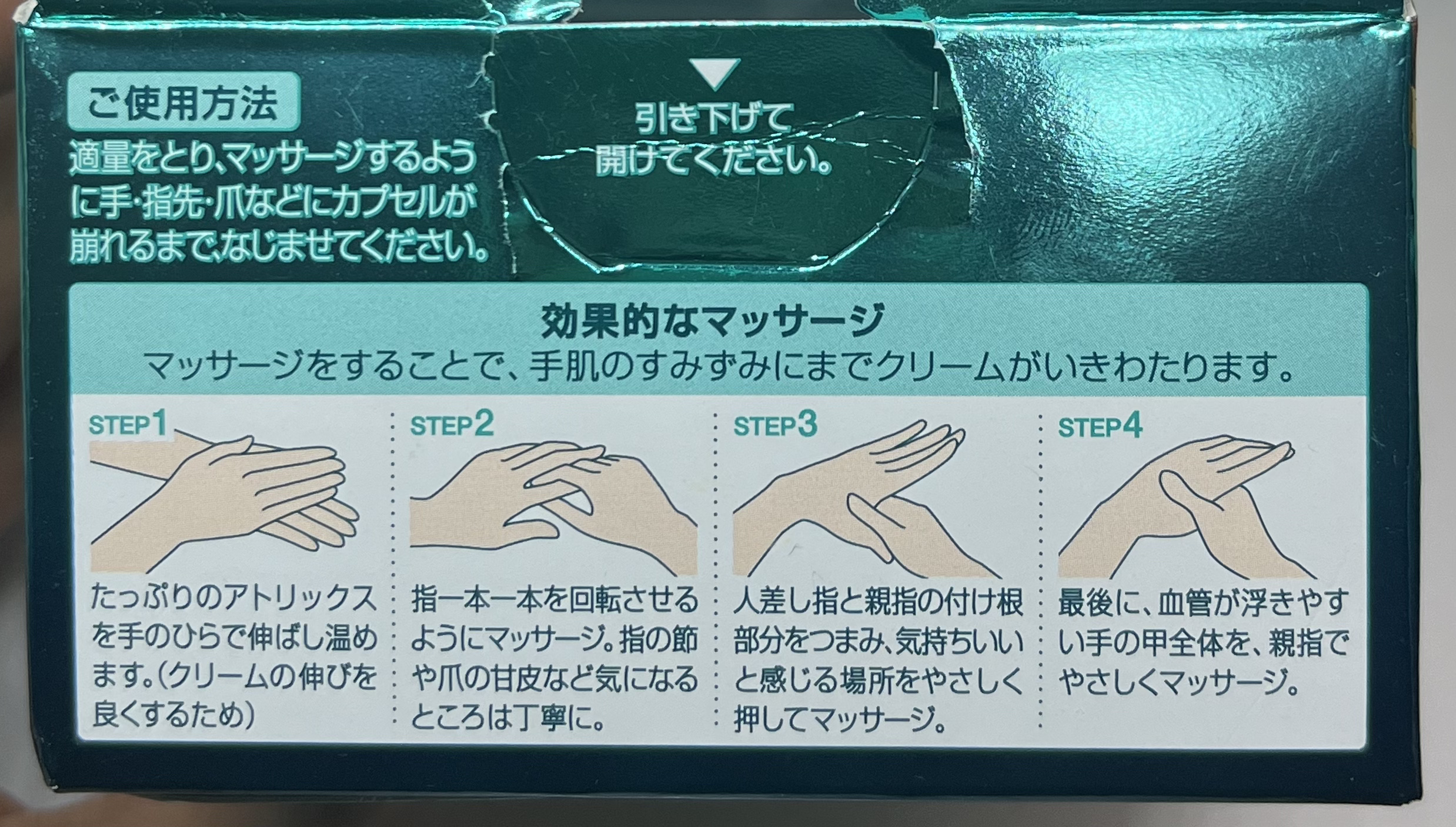- こっくり濃厚なクリームに、たっぷりの美容液成分がぎゅっと詰まったカプセルを配合。 おやすみ前にマッサージするように手肌にぬりこむと、カプセルが崩れて美容液成分※1が肌に広がります。 夜美容で、寝ている間にじっくり角層に浸透、翌朝ふっくらうるおったハリのある手肌に。 さらに気になる爪・指先までうるおって美しく。ドリーミーアロマの香り。 ※1ローヤルゼリーエキス&パンテノール(保湿成分)