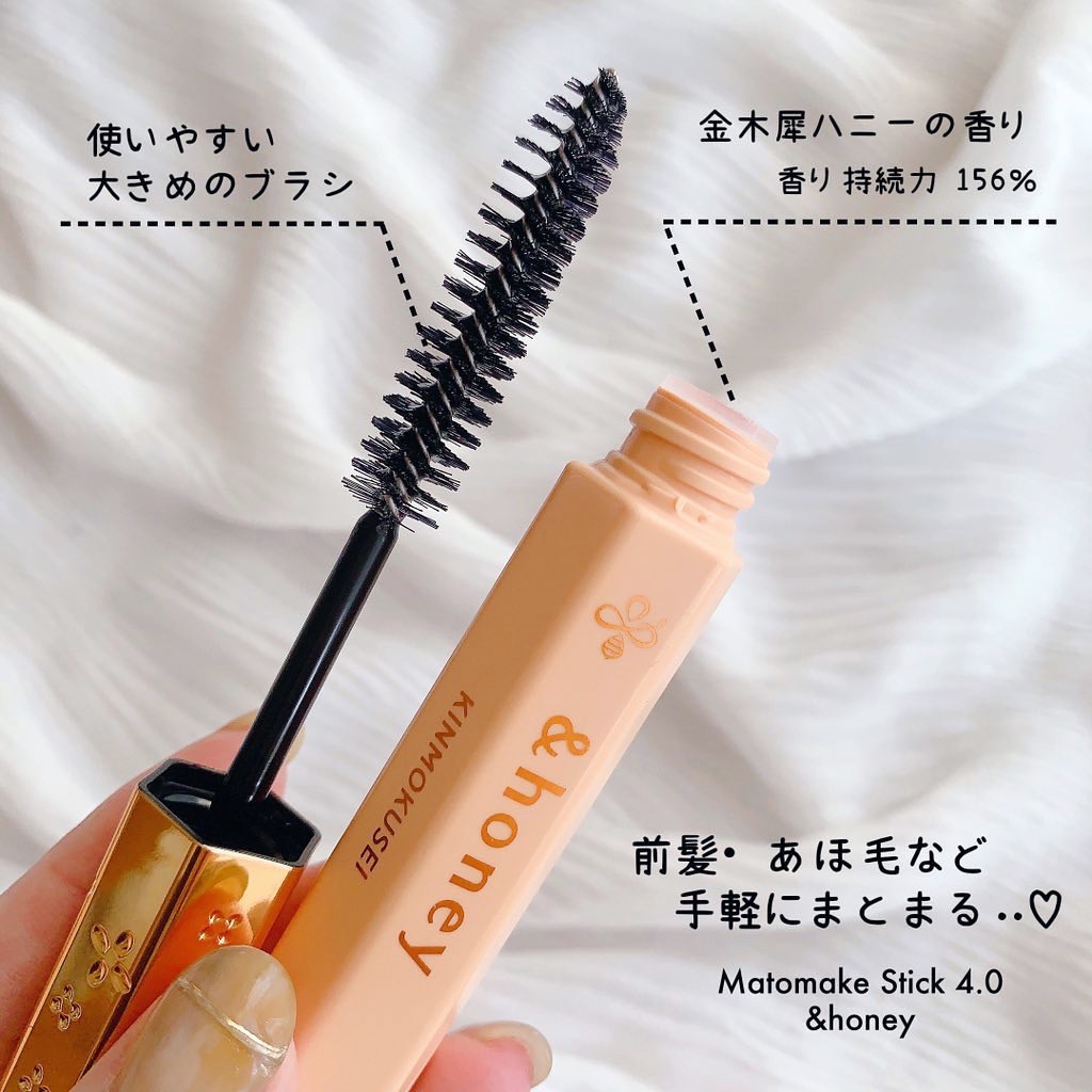 - &honey史上、最も香る※1金木犀ハニーの香り「ハチミツ美容スティック」 パリッと固めずアホ毛※2も前髪も思いのままに! 保湿効果の高いハチミツ*を選定し、うるおいを保ちながら思い通りのヘアスタイルを実現します。 ※1 当社既存品比(&honeyシリーズ) ※2 頭頂部から跳ね出てきてしまう短い毛 *保湿 【ご使用方法】 まっすぐにキャップを引き抜き、ブラシで気になる短い毛を整えます。 【ご注意】 ○お肌に異常が生じていないかよく注意して使用してください。化粧品がお肌に合わない時、 即ち次のような場合には、使用を中止してください。そのまま化粧品類の使用を続けますと、症状を悪化させることがありますので、皮膚科専門医等にご相談されることをおすすめします。 (1) 使用中、赤み、はれ、かゆみ、刺激、色抜け (白斑等)や黒ずみ等の異常が現れた場合 (2) 使用したお肌に、直射日光が当たって上記のような異常が現れた場合 ○傷やはれもの・湿疹等、お肌に異常がある部位には使用しないでください。 眉毛やまつげなど、頭髪以外のところに使用しないでください。目に入った時は、すぐに洗い流してください。 ○ご使用後は容器の口もと をきれいにふき、キャップをしっかり閉めてください。 ○強くかきまぜたり、容器から斜めに出し入れすると、プラ シが曲がる場合がございますので、ご注意ください。 ○火気にご注意ください。 ○乳幼児の手の届かないところに保管してください。 ○極端に低温又は高温な場所、直射日光の当たる場所には保管しないでください。