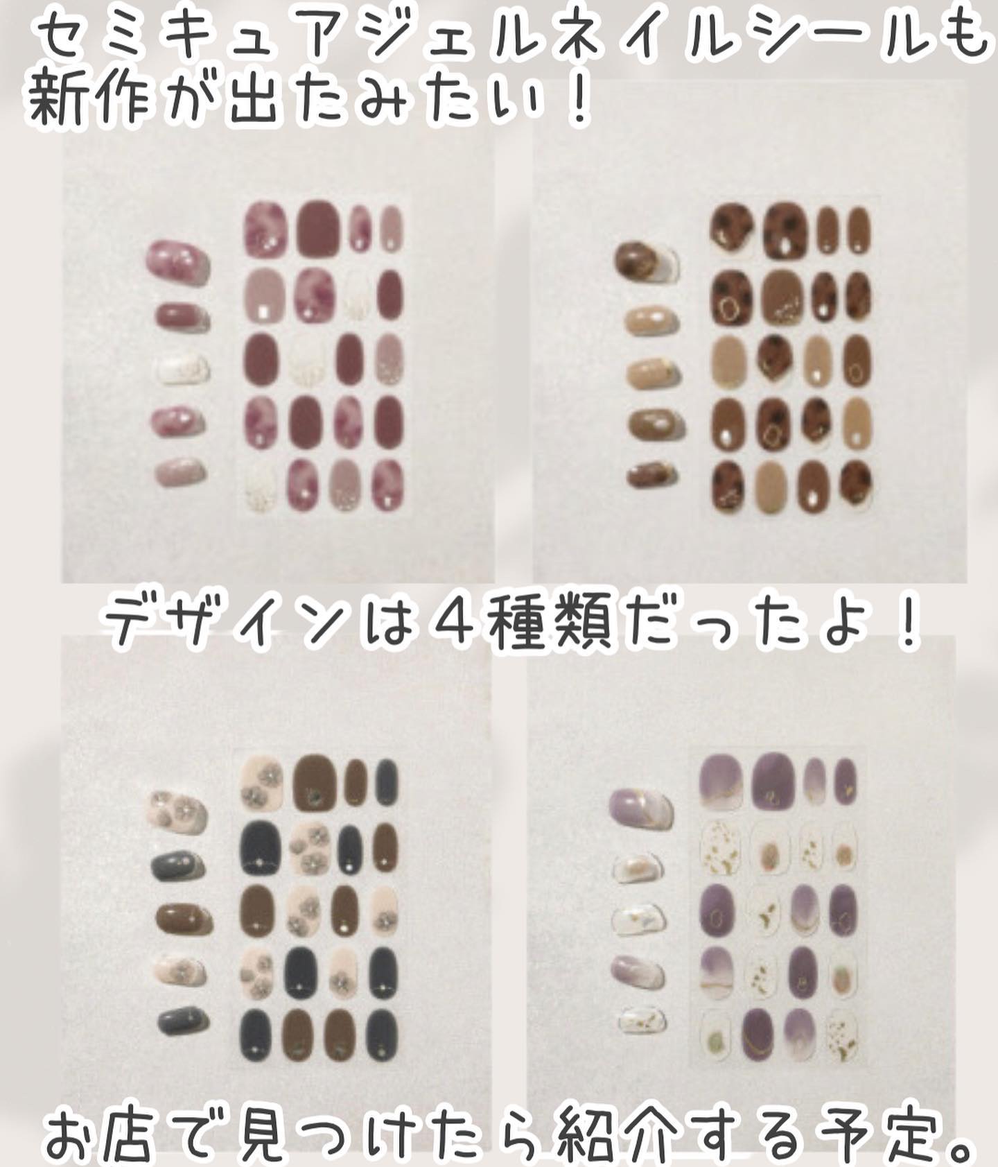 ダイソーは毎年人気の紗々ネイル! 今年はリボンのデザインがお気に入り!貼ってみるのが楽しみです✨ セリアはチョコ以外にもあって、ホワイトデーにも良さそうです! 明るくてかわいらしい雰囲気でした! ダイソーの硬化タイプのブラウン系もいい感じ! 剥がれにくいのでおすすめです✨
