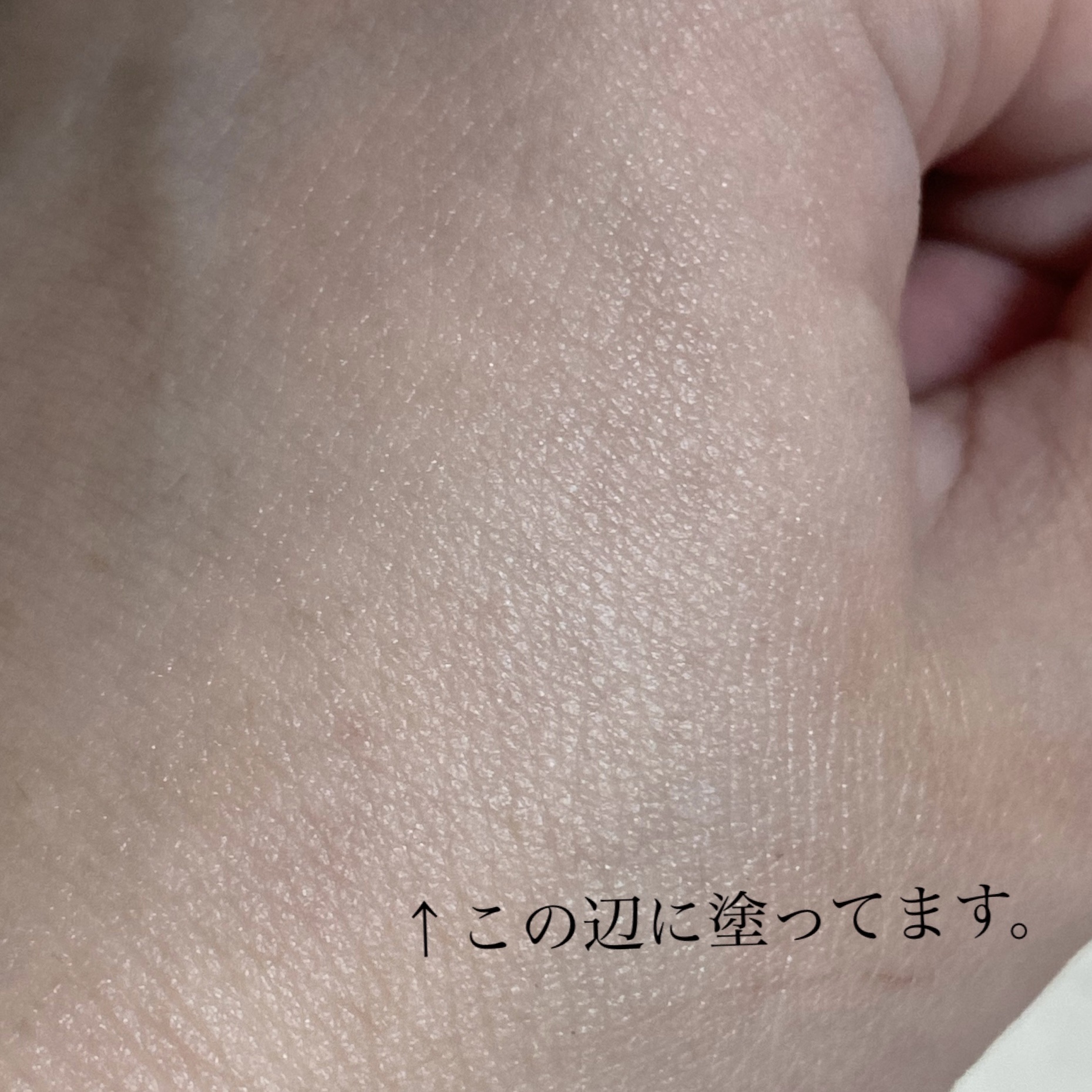 トーンアップするか否かの確認が漏れていて、無色透明のつもりで購入。開封時にパッケージを見てトーンアップやん!?!?となりました。しかしトーンアップと言っても艶で明るく見える程度の仕上がりで好みでした。 無色透明の方がベースメイク前に仕込むのに使いやすく、そのまま首やボディも塗れちゃうので手軽なんですよね。 塗りたては少しべたつくものの、時間が経つとベタつきは感じずしっとりとした触り心地に。