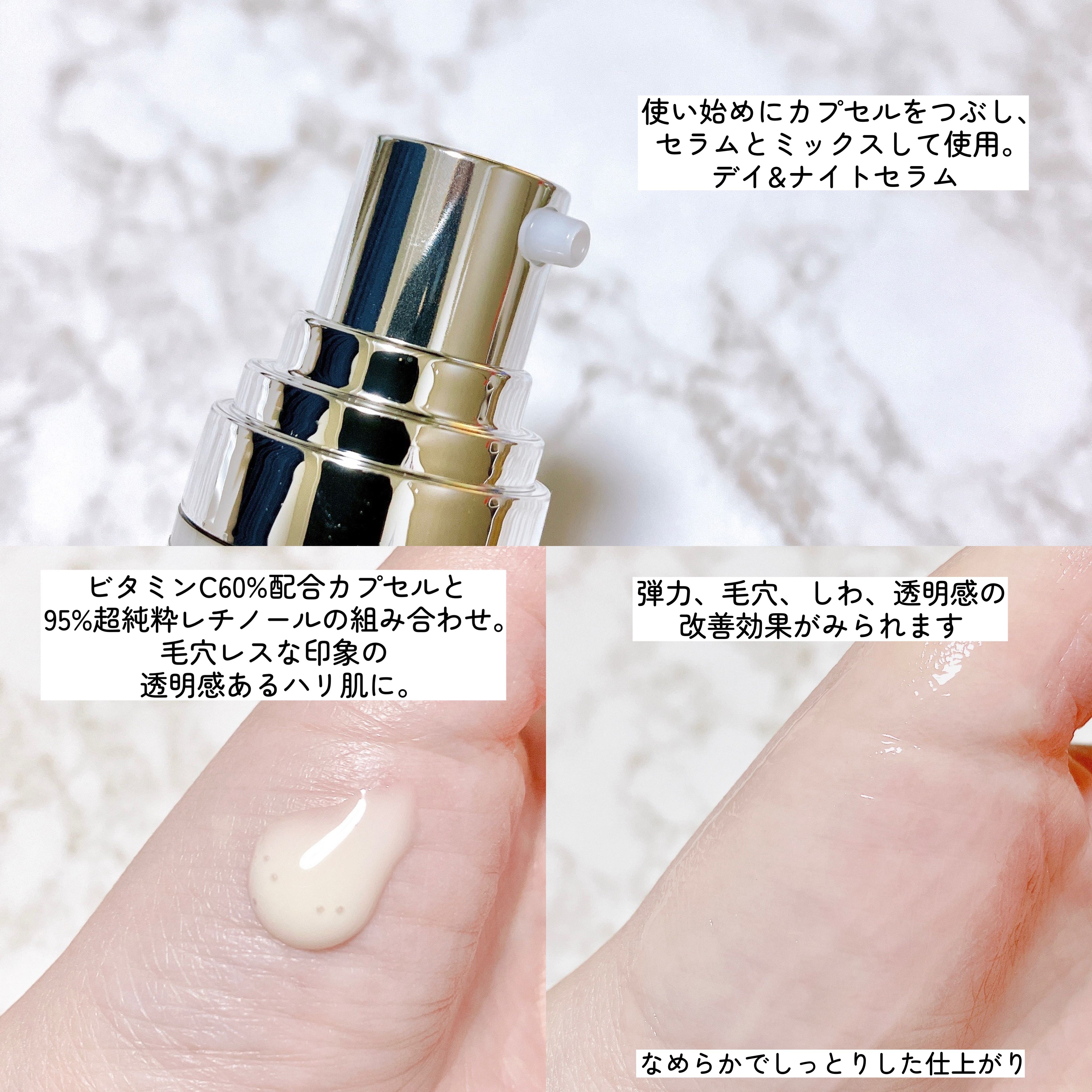 - ビタミンC*¹×レチノール*²の革新的*3な組み合わせで 毛穴・くすみ*4をケアし、毛穴レス印象肌*⁵へ マイルドな処方で朝晩使えるデイリーセラム *¹ アスコルビン酸、3-O-エチルアスコルビン酸(整肌保湿成分) *² 整肌成分 *³ 当社比 *⁴乾燥による *⁵ 肌にうるおいを与え、乾燥により目立った毛穴を目立たなくすること