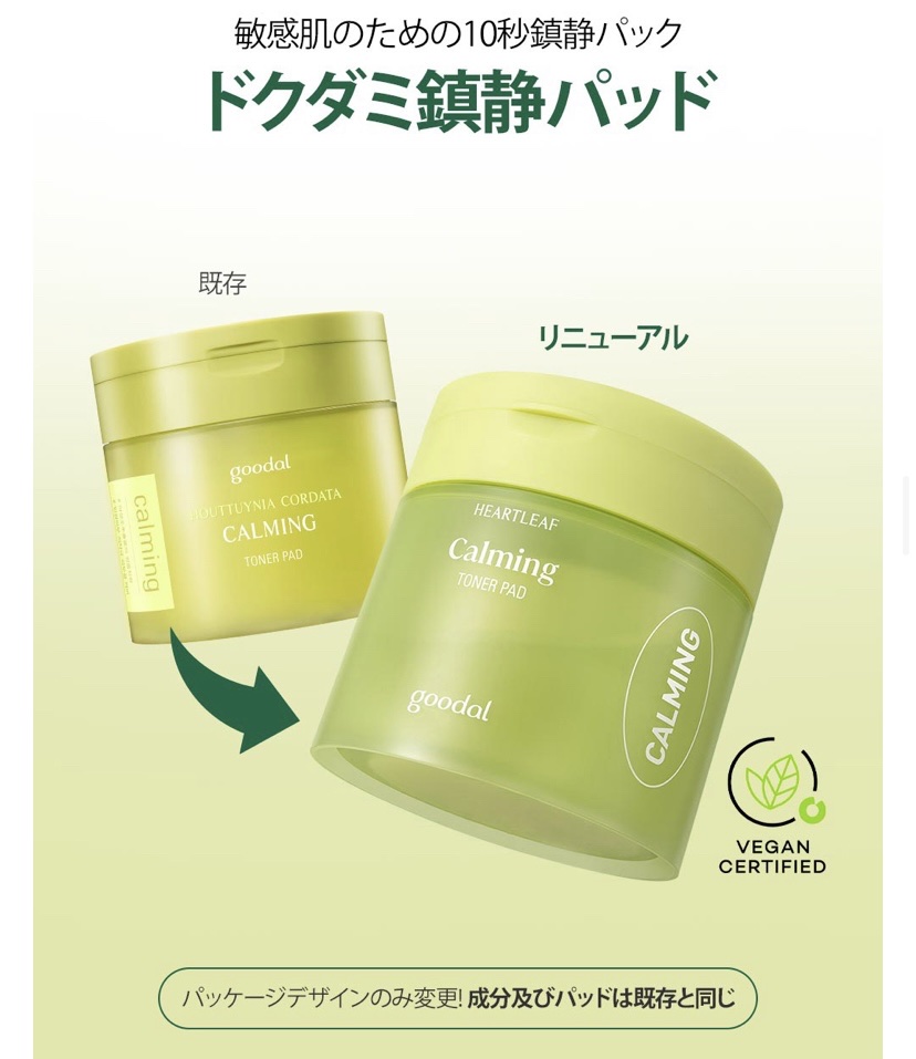 - 10秒で完了!肌鎮静ドクダミエキストナーパッド ガーゼ素材のパッドにドクダミエキスをたっぷり染み込んだ「グーダルHCトナーパッド」は、刺激を受けて敏感になった部分に乗せて集中水分補給+クーリングでき るほか、拭き取りパッドとして角質や毛穴ケアにもお使いいただけます。 パッドの両面で目の粗さが異なるので、部位やお悩みに応じて使い分けられるのも好評。また、肌pH指数に近い弱酸性パッドで肌の油水分バランスを整え、疲れた肌を内側から癒します。