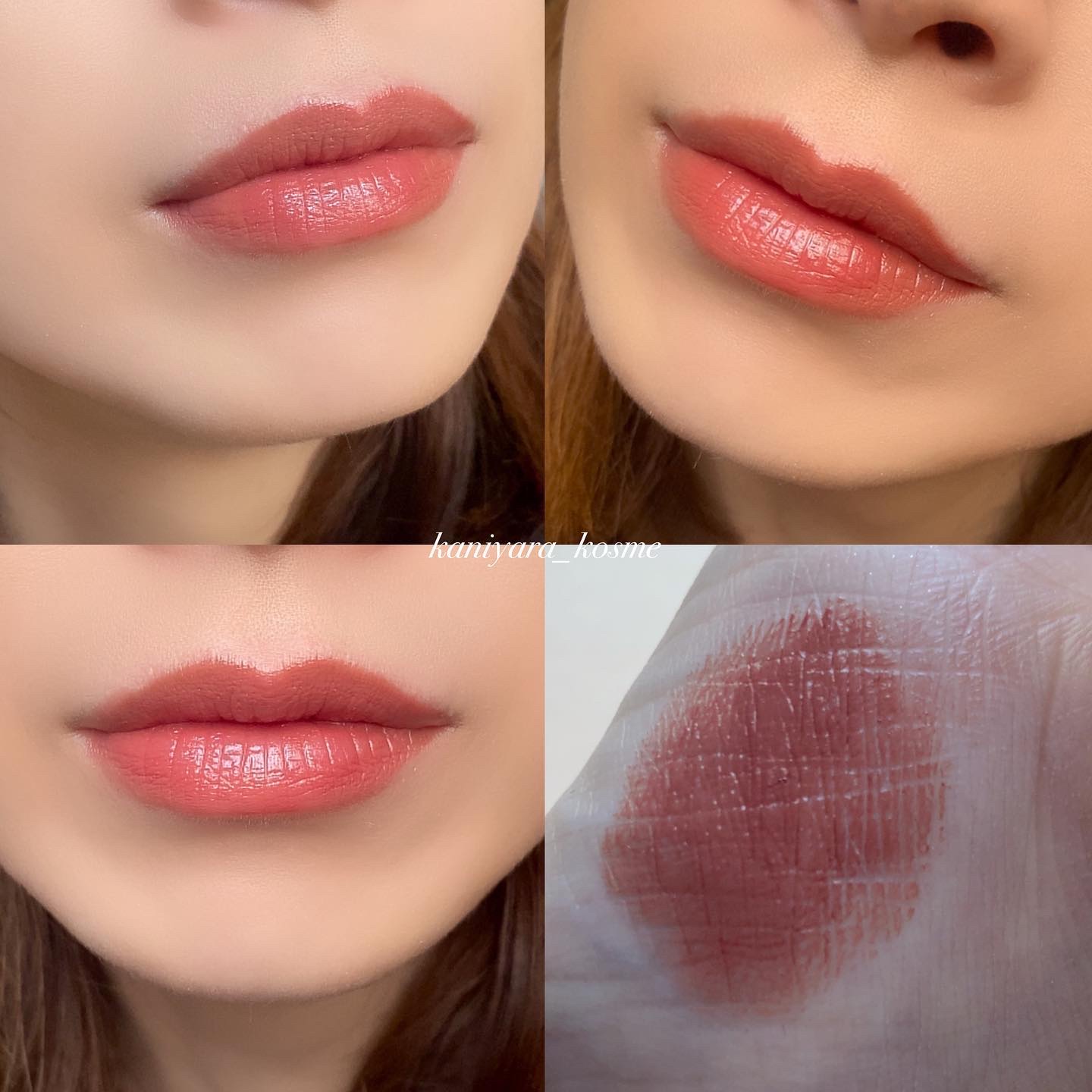 新色がすごく可愛いカラー😍 黄みのピンクベージュだった😂 赤みを抑えた深みブラウン。 色もちがすごい!と評価が高いけど 私は乾燥を感じましたが私はかなりの乾燥肌で唇も結構乾燥するからかも カラバリ豊富でオシャレカラー多い 色変わりがしないのはピカイチ 私の唇には合わなかった🥲 ブルベさん向きのカラーは少なめ
