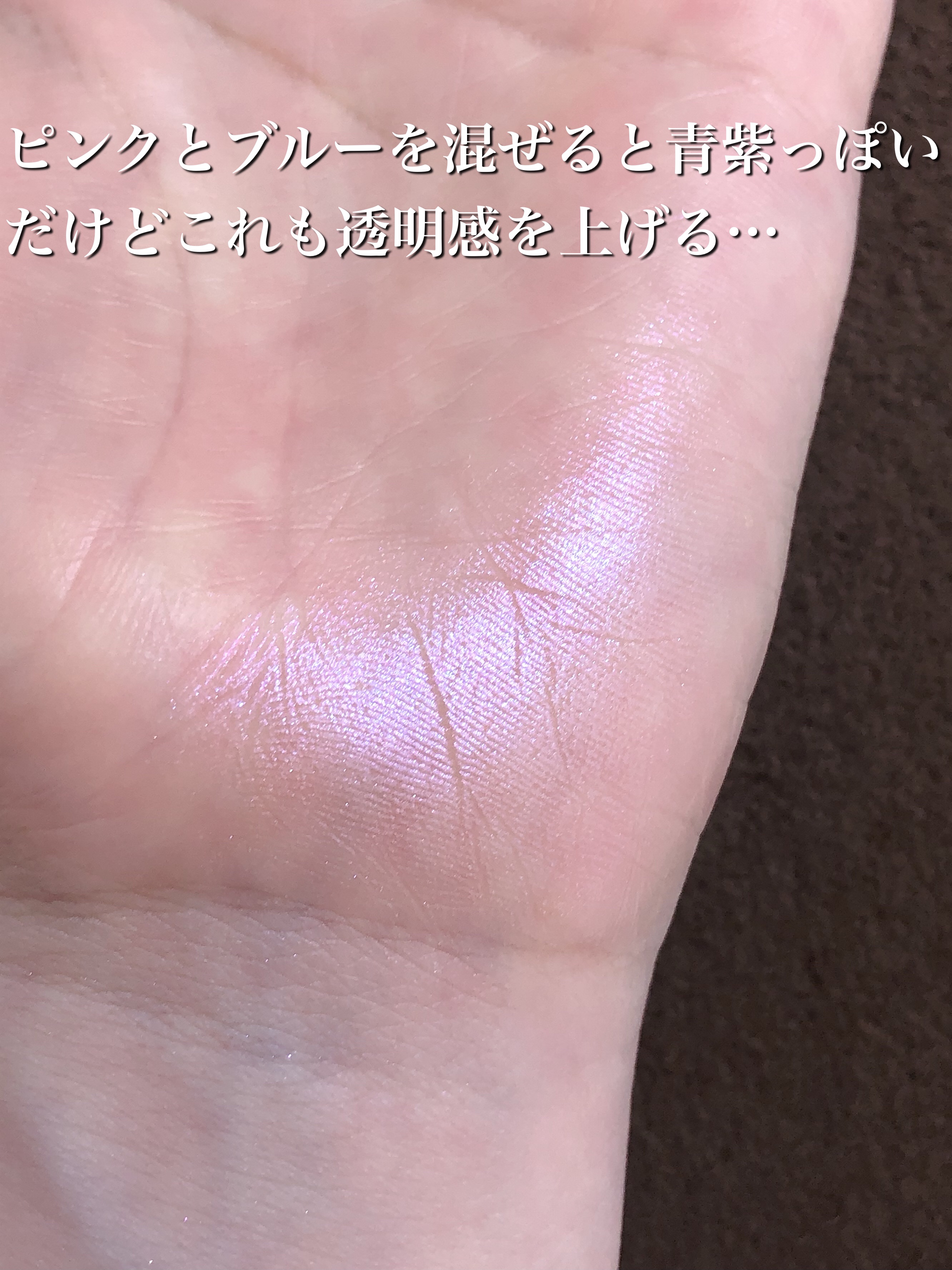 深海を思わせるようなブルーですが、傾けるとパープルにも見える不思議な色味。 偏光系が大好物なので嬉しさ極まれりですわ(?)アイシャドウとしてはもちろん、ハイライトとしても使えそう!