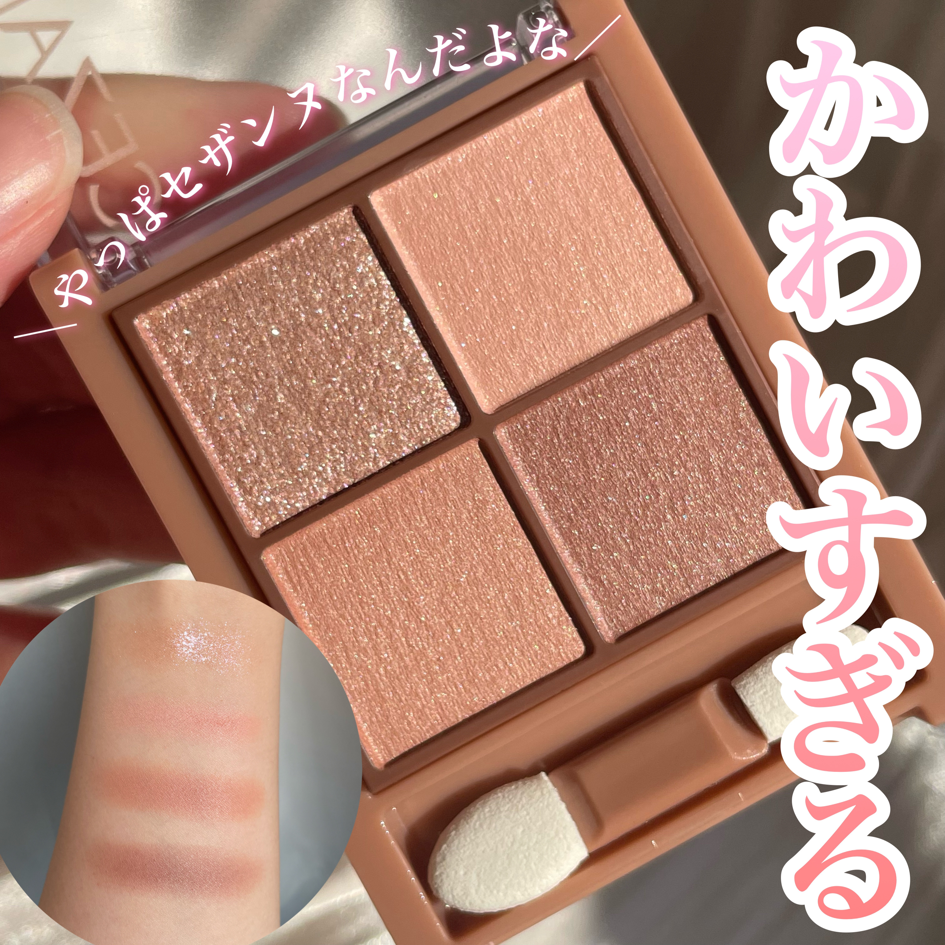 - 透け感マット×濃厚ブラウンの4色アイシャドウ。 しっかり目元を引き締めるビターなブラウンカラー。 透け感のあるブラウンを重ねて、自然な陰影のある目元へ。 ふんわり柔らかなパウダーなので、スルスル伸びてまぶたにピタッと密着。 保湿成分(スクワラン、ホホバ種子油)配合。