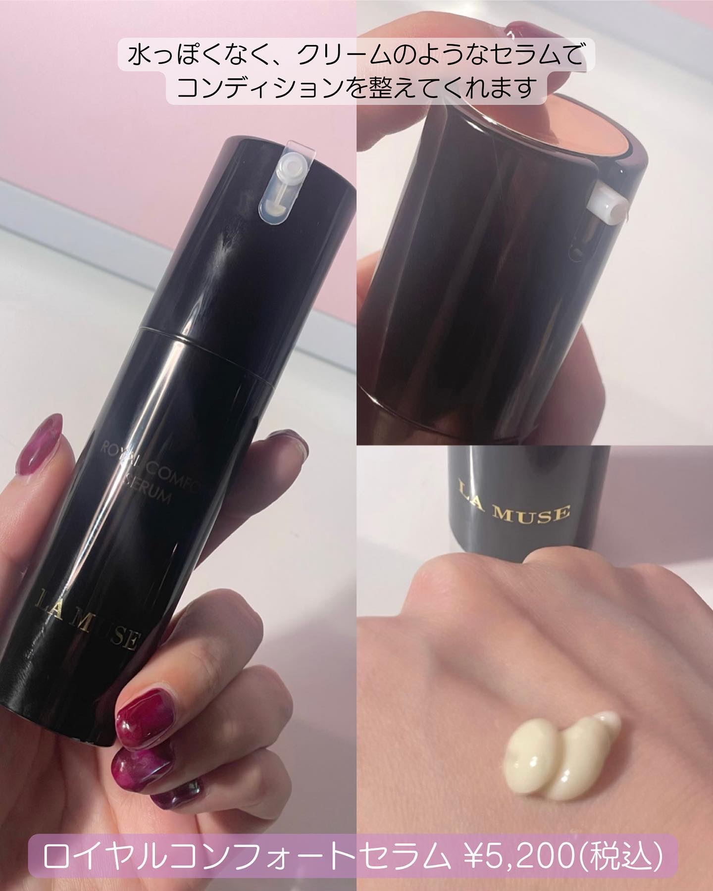 黒トリュフの抗酸化、弾力ケア成分を軸に ローヤルゼリーエキスやペプチドを配合したエイジングケア世代におすすめな高栄養スキンケア🍯⋆︎*゚ 使用感、香りもリッチ! エッセンスはとろみMAXだけど意外とベタつかずさっぱり 導入っぽい使用感かも? セラムはクリーム状で濃厚! どれか1つを選ぶならこのセラムにするぐらい弾力、ハリが欲しい人へおすすめしたい🤍!! クリームはゆるめなのに粘りがある不思議なテクスチャ 肌へ解けるようになじんで、こちらも高栄養を体験出来る! 冬の枯れた肌に使うともっと効果を感じそうなので楽しみ⛄❄