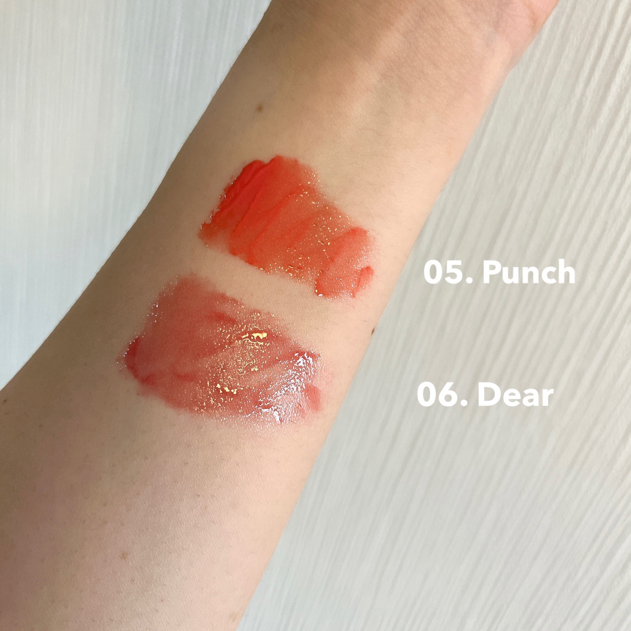 - <01 ソフィー(Surfy)> リンゴ酸ジイソステアリル、ジフェニルシロキシフェニルトリメチコン、精製水、ジフェニルジメチコン、ビスジグリセリルポリアシルアジペート-2、水添ポリイソブテン、ポリグリセリン-3、ポリソルベート60、セチルPEG/PPG-10/1ダイメチコン、イソステアリン酸ソルビタン、BG、ペンチレングリコール、1,2-ヘキサンジオール、ダイメジメチコン、アクリル酸ヒドロキシエチル/ナトリウムアクリロイルジメチルタウリン酸共重合体スクアラン、セテアレス-20、二酸化チタン、エチルヘキシルグリセリン、赤色227号、黄色5 号、香料、赤色104号(1)、水酸化酸化アルミニウム、ポリアクリル酸アンモニウム溶液、黄色4号、フェノキシエタノール、マカデミア種子油、ローズヒップ油、ツバキ油、トコフェロール <02 ピンクラッシュ(Pinkrush)> リンゴ酸ジイソステアリル、ジフェニルシロキシフェニルトリメチコン、精製水、ビスジグリセリルポリアシルアジペート-2、ジフェニルジメチコン、水添ポリイソブテン、ポリグリセリン-3、ポリソルベート60、セチルPEG/PPG-10/1ダイメチコン、イソステアリン酸ソルビタン、BG、ダイメジメチコン、ペンチレングリコール、1,2-ヘキサンジオール、アクリル酸ヒドロキシエチル/ナトリウムアクリロイルジメチルタウリン酸共重合体スクアラン、セテアレス-20、二酸化チタン、エチルヘキシルグリセリン、赤色227号、黄色5 号、香料、水酸化酸化アルミニウム、ポリアクリル酸アンモニウム溶液、フェノキシエタノール、マカデミア種子油、ローズヒップ油、ツバキ油、トコフェロール <03 グレア(Glare) > リンゴ酸ジイソステアリル、ジフェニルシロキシフェニルトリメチコン、精製水、ビスジグリセリルポリアシルアジペート-2、ジフェニルジメチコン、水添ポリイソブテン、ポリグリセリン-3、ポリソルベート60、セチルPEG/PPG-10/1ダイメチコン、イソステアリン酸ソルビタン、BG、ペンチレングリコール、1,2-ヘキサンジオール、ダイメジメチコン、アクリル酸ヒドロキシエチル/ナトリウムアクリロイルジメチルタウリン酸共重合体スクアラン、セテアレス-20、二酸化チタン、エチルヘキシルグリセリン、黄色5 号、香料、赤色104号(1)、赤色227号、水酸化酸化アルミニウム、ポリアクリル酸アンモニウム溶液、黄色4号、フェノキシエタノール、ブリリアントブルーFCF、マカデミア種子油、ローズヒップ油、ツバキ油、トコフェロール <04 ウィッティー(Witty)> リンゴ酸ジイソステアリル、ジフェニルシロキシフェニルトリメチコン、精製水、ビスジグリセリルポリアシルアジペート-2、ジフェニルジメチコン、水添ポリイソブテン、ポリグリセリン-3、ポリソルベート60、セチルPEG/PPG-10/1ダイメチコン、イソステアリン酸ソルビタン、BG、ダイメジメチコン、ペンチレングリコール、1,2-ヘキサンジオール、アクリル酸ヒドロキシエチル/ナトリウムアクリロイルジメチルタウリン酸共重合体スクアラン、セテアレス-20、二酸化チタン、黄色5 号、赤色227号、エチルヘキシルグリセリン、香料、水酸化酸化アルミニウム、ポリアクリル酸アンモニウム溶液、フェノキシエタノール、マカデミア種子油、ローズヒップ油、ツバキ油、トコフェロール <05 パンチ(Punch)> リンゴ酸ジイソステアリル、ジフェニルシロキシフェニルトリメチコン、精製水、ジフェニルジメチコン、ビスジグリセリルポリアシルアジペート-2、水添ポリイソブテン、ポリグリセリン-3、ポリソルベート60、セチルPEG/PPG-10/1ダイメチコン、イソステアリン酸ソルビタン、BG、ペンチレングリコール、1,2-ヘキサンジオール、ダイメジメチコン、アクリル酸ヒドロキシエチル/ナトリウムアクリロイルジメチルタウリン酸共重合体二酸化チタン、スクアラン、セテアレス-20、黄色5 号、エチルヘキシルグリセリン、香料、赤色227号、赤色104号(1)、水酸化酸化アルミニウム、ポリアクリル酸アンモニウム溶液、フェノキシエタノール、マカデミア種子油、ローズヒップ油、ツバキ油、トコフェロール <06 ディア(Dear)> リンゴ酸ジイソステアリル、ジフェニルシロキシフェニルトリメチコン、精製水、ジフェニルジメチコン、ビスジグリセリルポリアシルアジペート-2、水添ポリイソブテン、ポリグリセリン-3、ポリソルベート60、セチルPEG/PPG-10/1ダイメチコン、イソステアリン酸ソルビタン、BG、ペンチレングリコール、1,2-ヘキサンジオール、ダイメジメチコン、アクリル酸ヒドロキシエチル/ナトリウムアクリロイルジメチルタウリン酸共重合体スクアラン、セテアレス-20、二酸化チタン、エチルヘキシルグリセリン、黄色5 号、赤色227号、香料、水酸化酸化アルミニウム、黄色4号、ポリアクリル酸アンモニウム溶液、フェノキシエタノール、マカデミア種子油、ブリリアントブルーFCF、ローズヒップ油、ツバキ油、トコフェロール <07 カインド(Kind)> リンゴ酸ジイソステアリル、ジフェニルシロキシフェニルトリメチコン、精製水、ジフェニルジメチコン