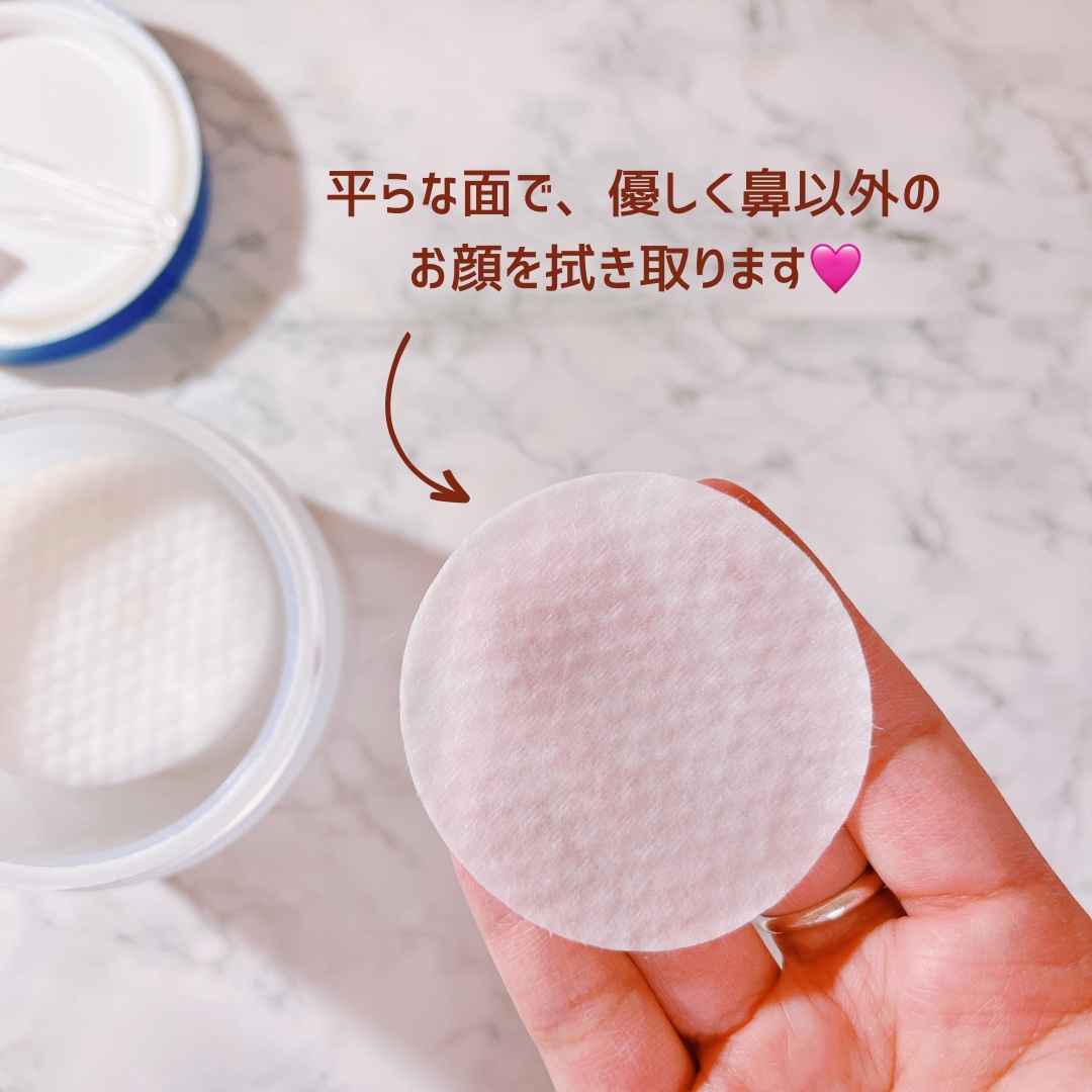 洗顔後はタオルで拭く派なので繊維が付いてたりすることもたまにあったり。 でもこれで拭くとそういう繊維や残っていた汚れや小鼻の角栓も取れて洗顔よりいいかもしれない! 今のところ吹き出物もないし荒れたりもしてない。 洗顔でたまにある洗い残しもないからフェイスラインにニキビも出来にくい🥺嬉 気になる方はぜひ朝習慣に取り入れてみてください♡