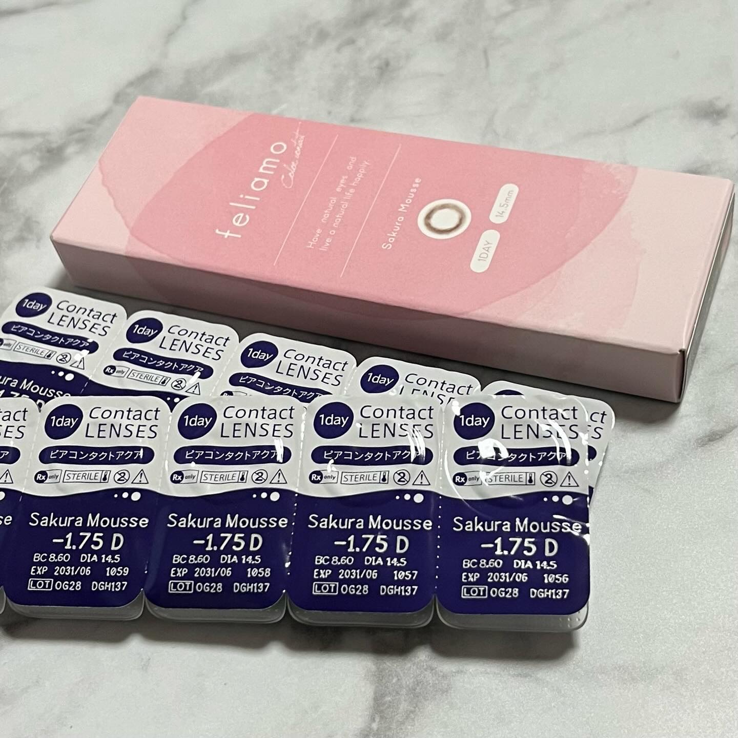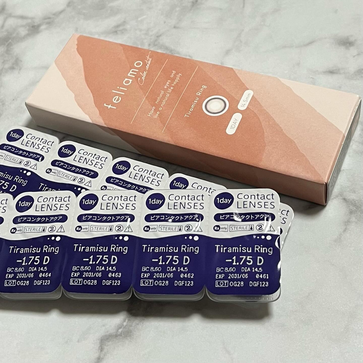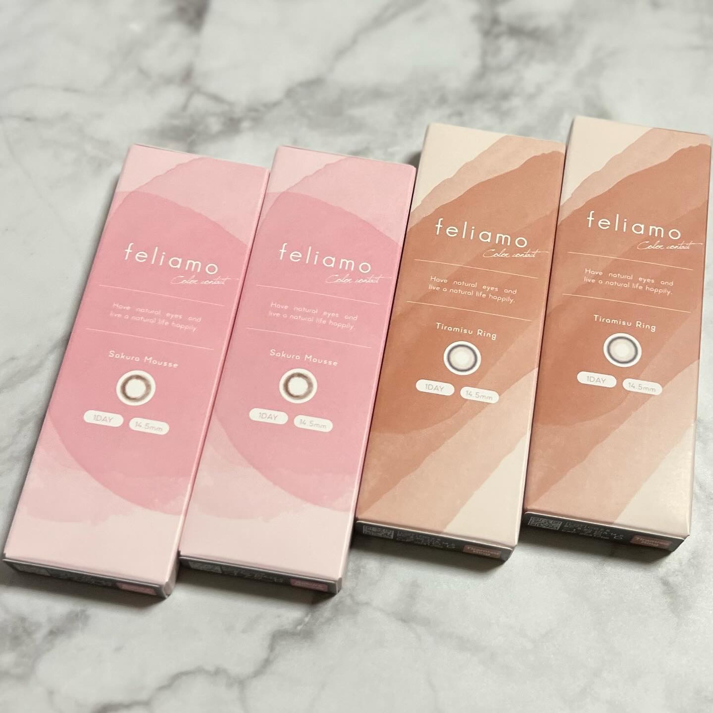 - ※2025年6月以降、商品パッケージ裏面・側面の一部表記を順次変更いたします。尚、これにかかる商品の交換・返品は承っておりません。 どんな瞬間にも溶け込む誰からも愛される瞳へ feliamoの由来は felice amore~幸せな愛~ 瞳から愛されオーラを放つ好印象レンズで女性らしさと品を演出。 オンも、オフも、特別な日も。 どんな場面にも溶け込むレンズラインナップで誰からも愛される瞳に。 UV CUT Feature1 肌や瞳に有害といわれ、白内障などの眼病を引き起こす危険性のある紫外線を99%カットします。(UV-A波75%、UV-B波99%カット) イオン性 Feature1 水分を多く含み酸素を通しやすいため瞳にやさしい使い心地で、快適な装用感です。 高含水 Feature1 水分が多く含むやわらかい素材で、快適なつけ心地です。 レンズ構造 Feature1 まぶた側に着色剤を内包しているため、角膜に色素が触れることがない構造を採用しています。 レンズ形状 Feature1 フチを丸みのある形状にすることで自然な装用感を実現しました。 ※装用感には個人差があります。 カラーコンタクトレンズの不適正使用による眼障害の危険性等などがあります。 ●コンタクトレンズは高度管理医療機器です。不十分な洗浄・消毒など不適切なケアや、長時間・交換期間を超えた装用により、アレルギー性結膜炎、角膜感染症、角膜潰瘍等の重篤な眼障害が発生する危険性があります ●ご使用前に取扱説明書を確認してください 使用上の留意事項 ●眼科医院等を受診してからお求めください ●眼に異常を感じたら直ちにレンズ使用を中止し、お近くの眼科等で診察を受けてください ●医師の指示にしたがってご使用ください ●コンタクトレンズを装用する場合、自覚症状がなくても、眼科医院等での定期検査を受けてください ●レンズに不具合がある場合は使用しないでください
