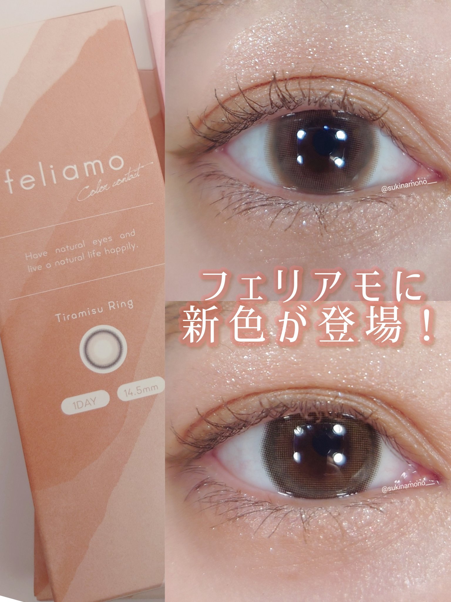 - ※2025年6月以降、商品パッケージ裏面・側面の一部表記を順次変更いたします。尚、これにかかる商品の交換・返品は承っておりません。 どんな瞬間にも溶け込む誰からも愛される瞳へ feliamoの由来は felice amore~幸せな愛~ 瞳から愛されオーラを放つ好印象レンズで女性らしさと品を演出。 オンも、オフも、特別な日も。 どんな場面にも溶け込むレンズラインナップで誰からも愛される瞳に。 UV CUT Feature1 肌や瞳に有害といわれ、白内障などの眼病を引き起こす危険性のある紫外線を99%カットします。(UV-A波75%、UV-B波99%カット) イオン性 Feature1 水分を多く含み酸素を通しやすいため瞳にやさしい使い心地で、快適な装用感です。 高含水 Feature1 水分が多く含むやわらかい素材で、快適なつけ心地です。 レンズ構造 Feature1 まぶた側に着色剤を内包しているため、角膜に色素が触れることがない構造を採用しています。 レンズ形状 Feature1 フチを丸みのある形状にすることで自然な装用感を実現しました。 ※装用感には個人差があります。 カラーコンタクトレンズの不適正使用による眼障害の危険性等などがあります。 ●コンタクトレンズは高度管理医療機器です。不十分な洗浄・消毒など不適切なケアや、長時間・交換期間を超えた装用により、アレルギー性結膜炎、角膜感染症、角膜潰瘍等の重篤な眼障害が発生する危険性があります ●ご使用前に取扱説明書を確認してください 使用上の留意事項 ●眼科医院等を受診してからお求めください ●眼に異常を感じたら直ちにレンズ使用を中止し、お近くの眼科等で診察を受けてください ●医師の指示にしたがってご使用ください ●コンタクトレンズを装用する場合、自覚症状がなくても、眼科医院等での定期検査を受けてください ●レンズに不具合がある場合は使用しないでください