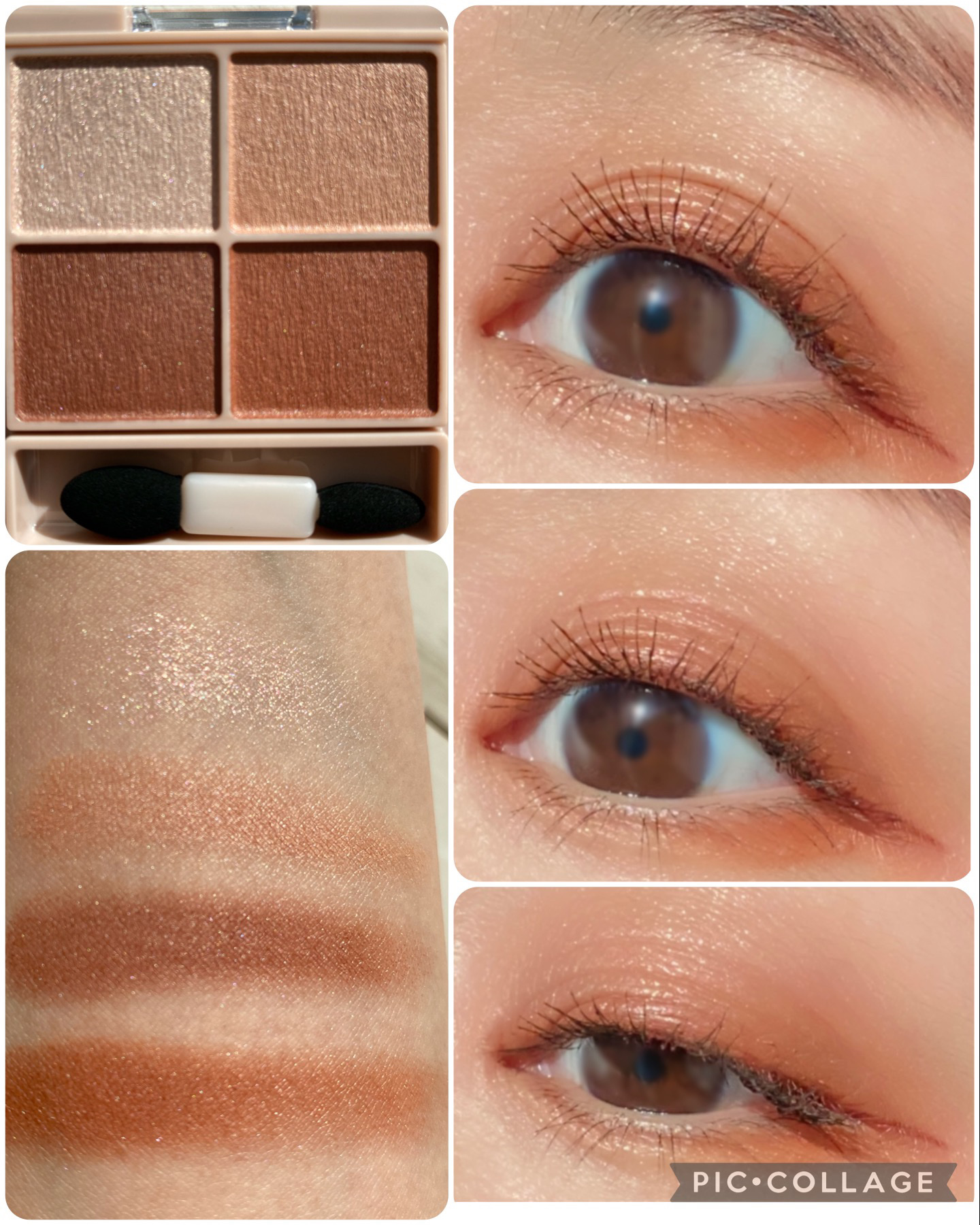 淡いブラウンメイクができます。マットはブラウン系なんですけどラメはピンクっぽい透明感があって凄くすきです 発色強めで絶妙なブラウンが私のストライクゾーンすぎて毎日メイク入りです 淡い色が好きなので凄く大好きなアイシャドウになりました。ずっと可愛いって言ってます笑