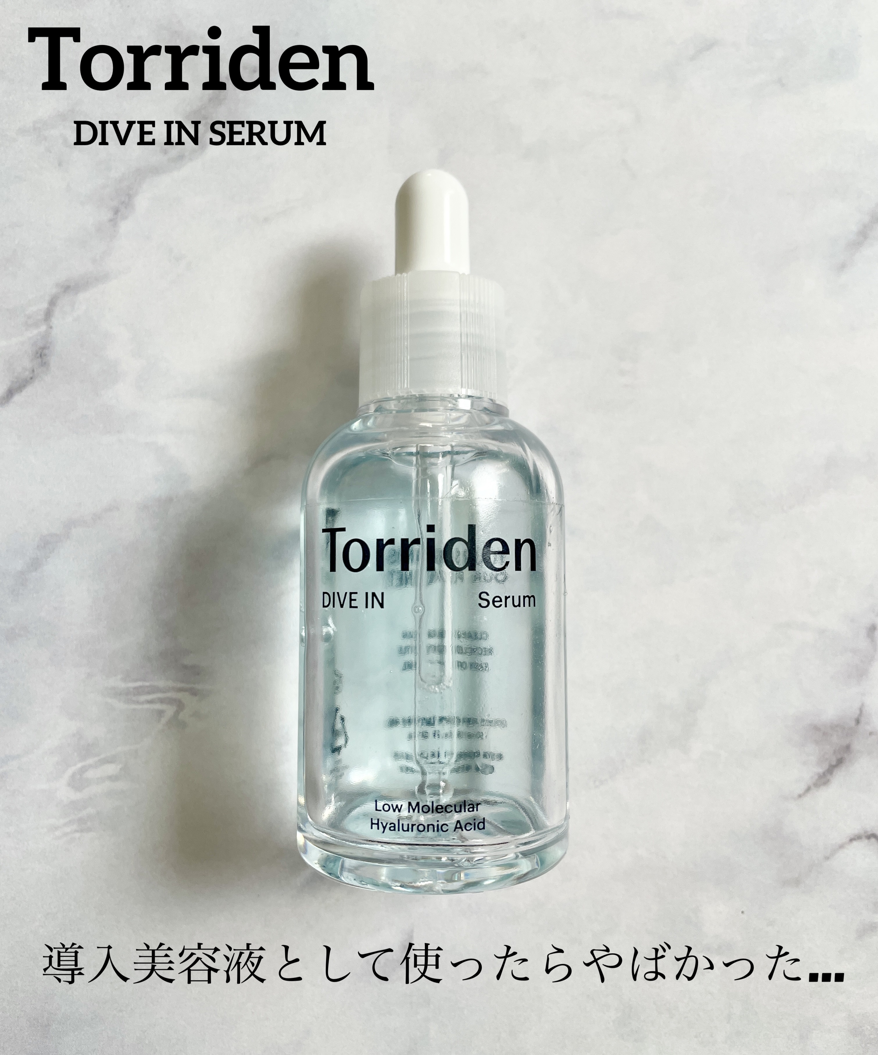 Torridenダイブインセラムダイブインマルチパッド水分チャージの青Torriden。セラムは美容液としてはもちろんブースターやファンデに混ぜたりマルチに使えて便利🙆♀️少しとろみのあるテクスチャー。水分チャージっていうくらいだから保湿感...