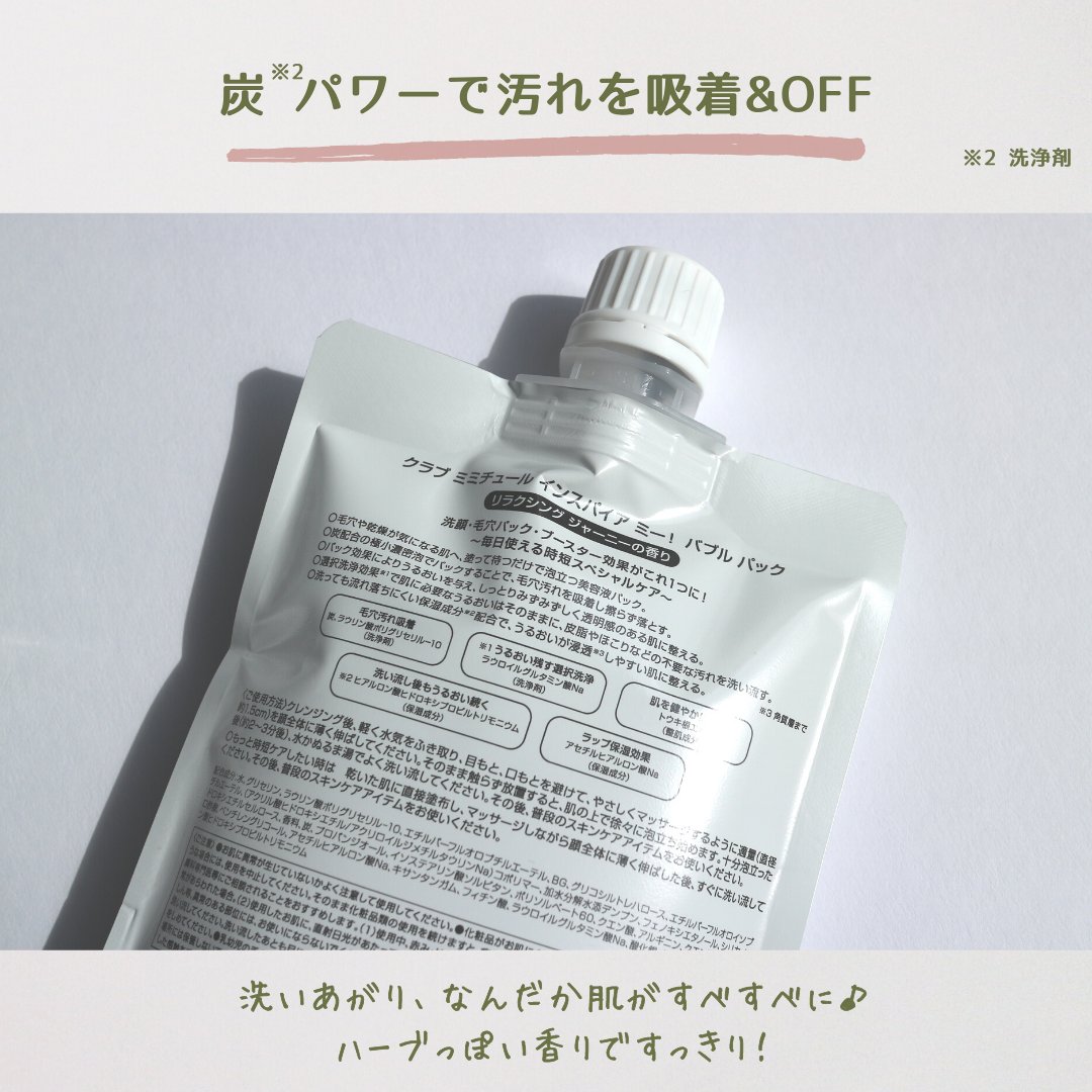 炭*パワーで素肌を擦らず汚れを吸着&OFFミミチュール【インスパイアミーバブルパック】 1980円税込炭*パワーで素肌を擦らず汚れを吸着&OFF*洗浄剤質感が変化する泡パック🫧クレンジング後軽く水気をふき取り、目もと、口もとを避け、やさしくマ...