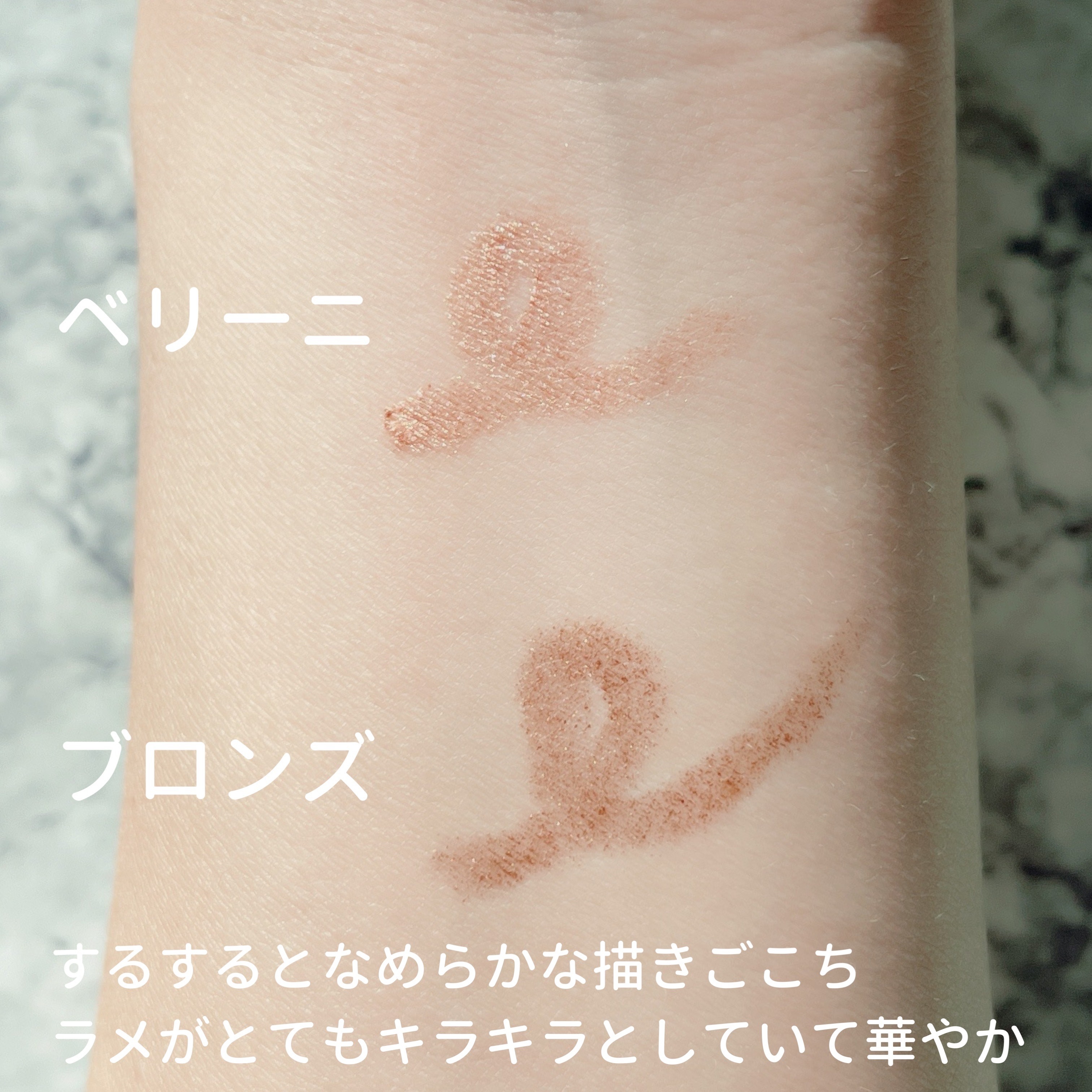 ブラウンカラーにゴールドラメが入ったカラー 締め色としてまぶたの際に使う事が多いです 定着すると崩れにくく擦れにも強いシャドウスティック のせてすぐであればぼかせます スモーキーメイクがしやすい印象 日常のメイクは思っているより細く、のせる量は少なめ位がちょうどよかったです
