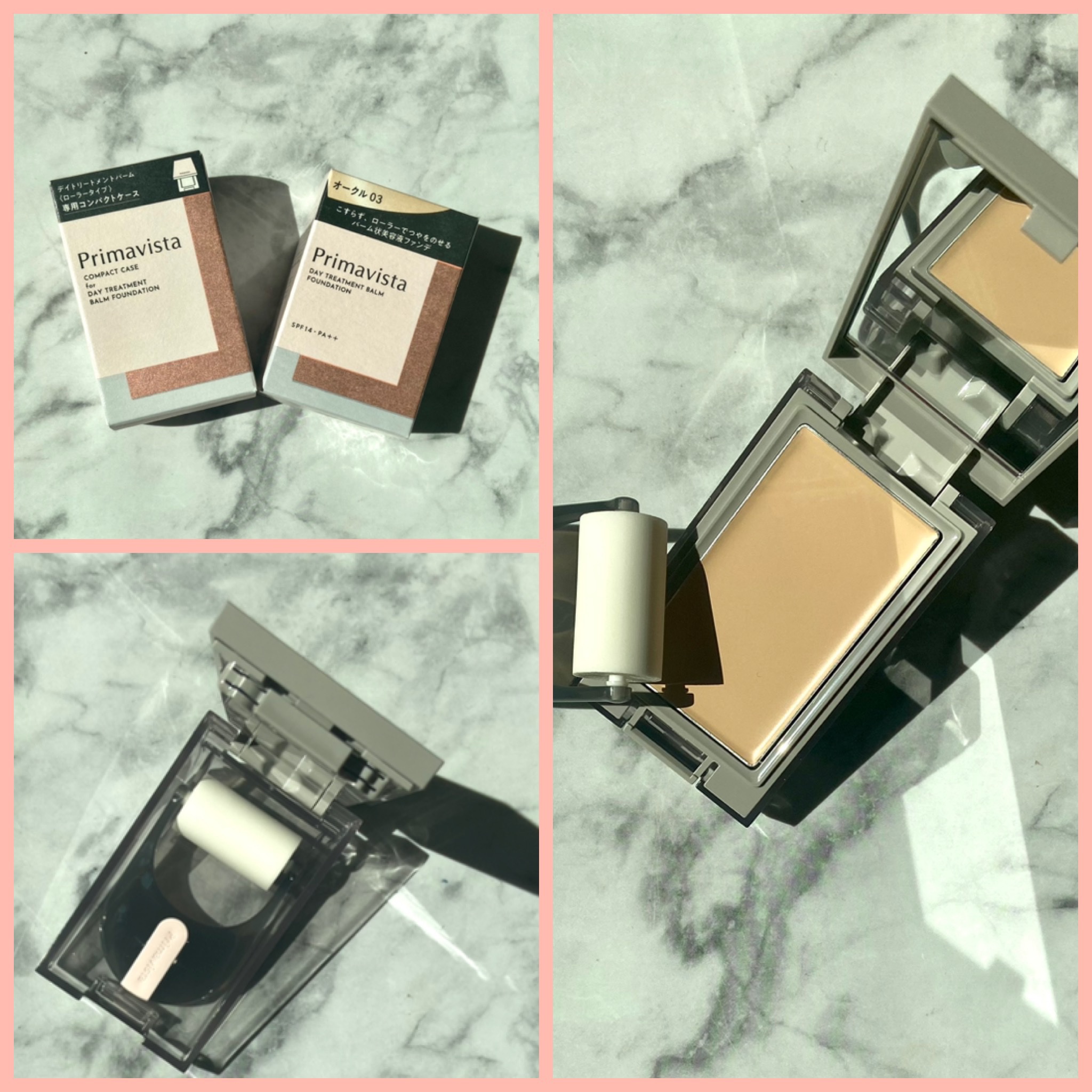 ローラーで付けるバーム状美容液ファンデーションです✨ 大人ピンクが素敵な厚みのあるコンパクトケースで、ローラーが収納出来ます✨ コロコロとファンデーションを肌に付けてみると、とてもなめらかに均一にのせることができて、ムラなく綺麗に仕上がりました✨ しっとりとした使用感です✨ スキンケア後、化粧下地なしでもなめらかな仕上がり ⭐️皮脂固化パウダー配合 ⭐️長時間保湿感が持続します