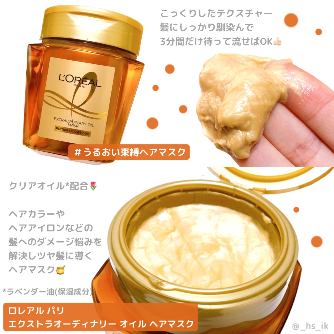 ロレアルパリエクストラオーディナリーオイルヘアマスクドラッグストアで購入しました!もったりしたテクスチャで、ダメージヘアの方におすすめのトリートメントかなと思いました!かなり保湿力が高いので、髪のダメージが気になる方に良いと思います!私は、髪...