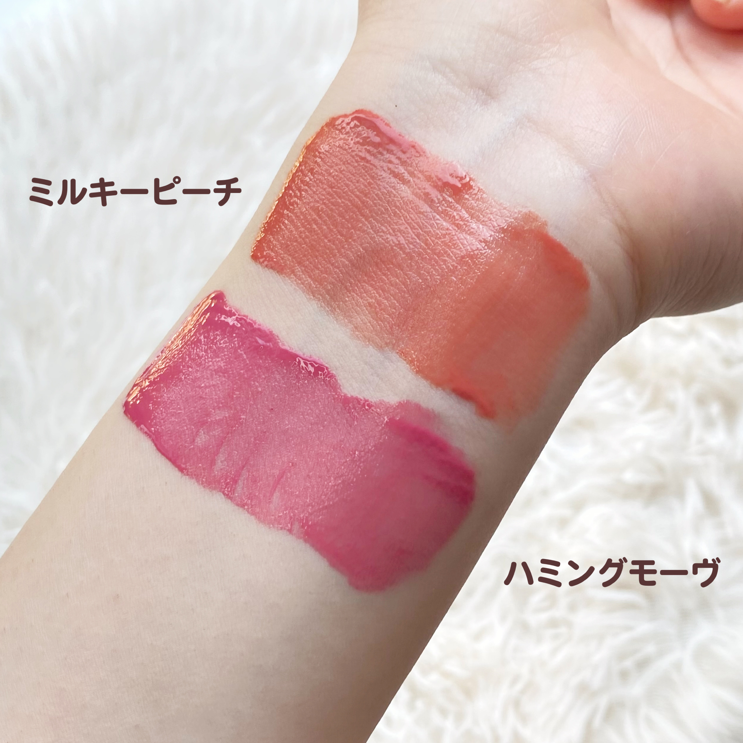 見たままんまのカラーそのまま発色され、発色が超良いです! ちゅるんとした感じが超めちゃかわいい! HUMMING MAUVEは、生き生きとしたモーヴィッシュピンク。 ブルベのわたしにとって、この色は肌なじみよく使いやすかった🤍